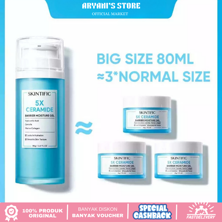 SKINTIFIC OFFICIAL STORE 5X Ceramide Barrier Repair Gel 80g Facial Moisturizer Skincare Sunscreen Retinol Serum Kosmetik