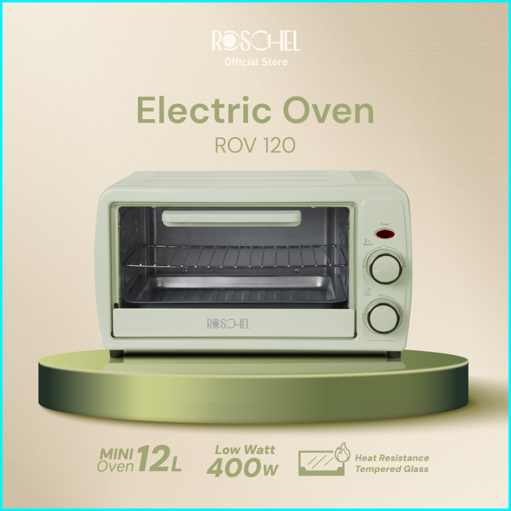 Roschel Electric Oven Low Watt 400 W Kapasitas 12 L Hemat Listrik Pemanas Ganda Atas Bawah Stainless Steel Pemanggang Ku