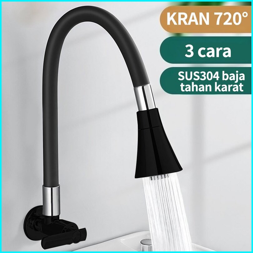 Sus 304 Kran Angsa Tembok Fleksibel Kran Cuci Piring Hitam Kran Angsa Kran Dapur Kran Wastafel 2 Model