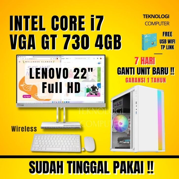 Core i7 ‖ VGA 4 GB ‖ Full Set 22" ‖ PC Gaming Editing Rendering ‖ CPU Komputer Rakitan i7 - P DISKON