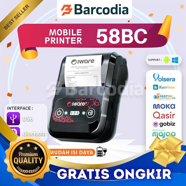 [Mall] Barcodia Mobile Printer Iware MP-58BC Free Kertas 5 Roll