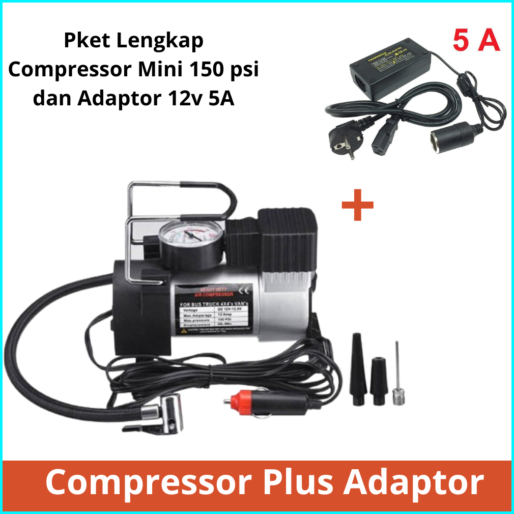 Kompresor Mini Cet Heavy Duty150 Psi Dan Adaptor 12v 5a - Pompa Ban Air Compressor Dc 12v Kabel 2.5 Meter Adaptor - Comp