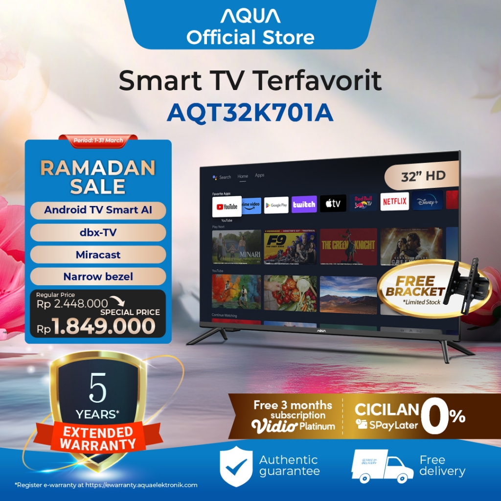 AQUA Elektronik TV 32 inch AQT32K701A - 32 Inch Smart TV Android - HD - Google Play - Bluetooth - Chromecast - Bazel Les