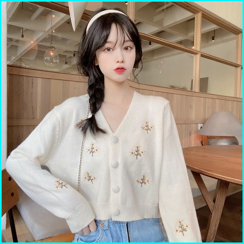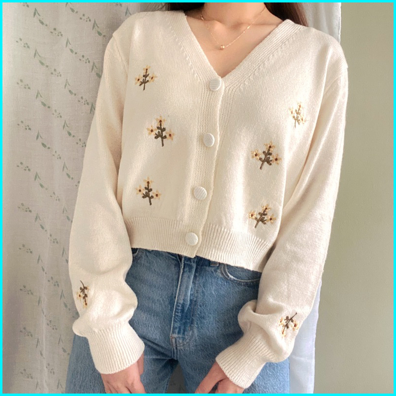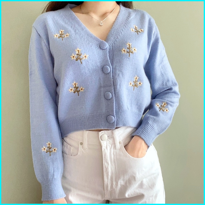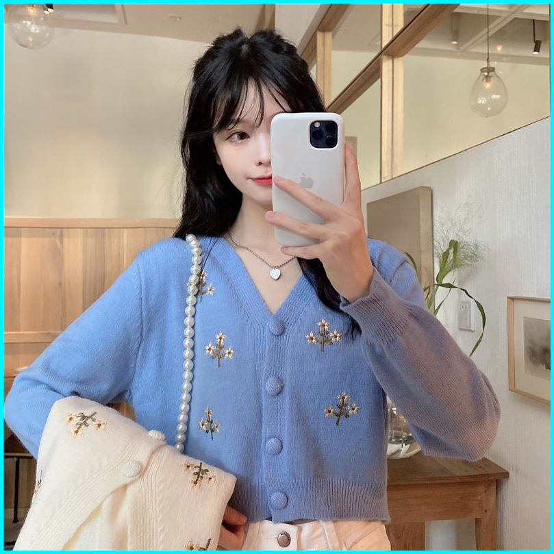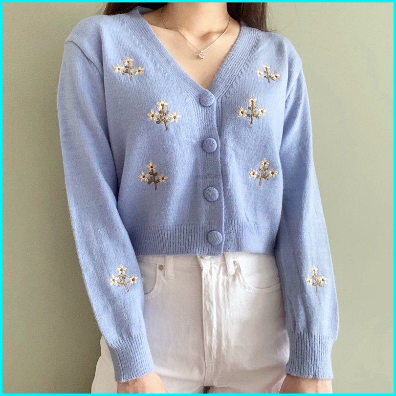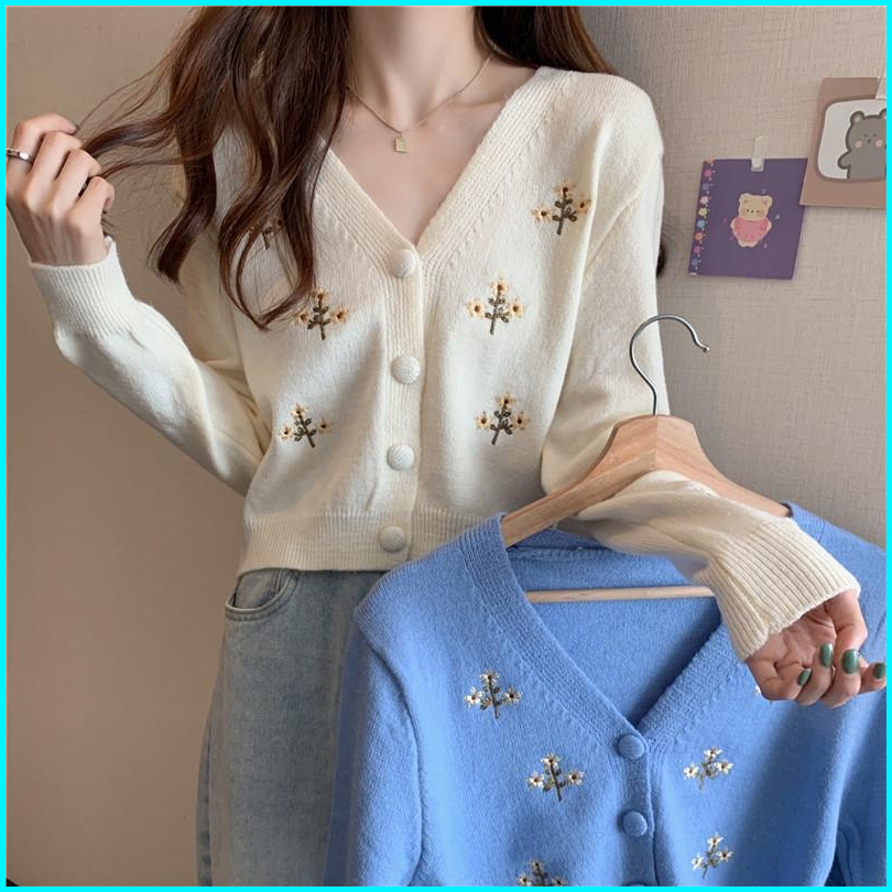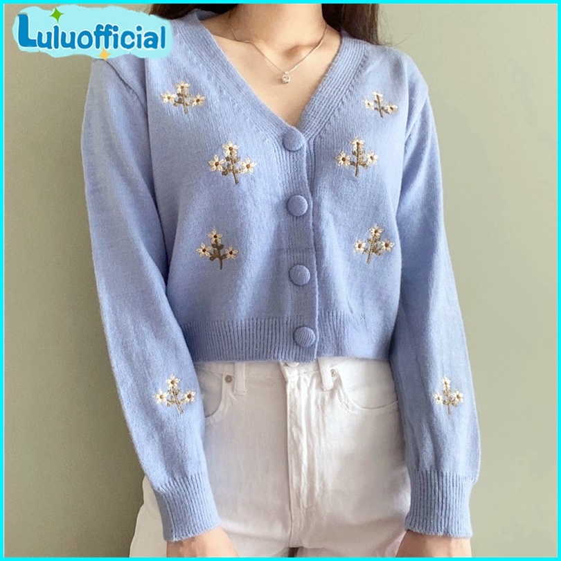 Lulu-knit Cardigan Cardi Outer Wanita Rajut Lengan Panjang Bordir Bunga Kembang Korea Ready Stock