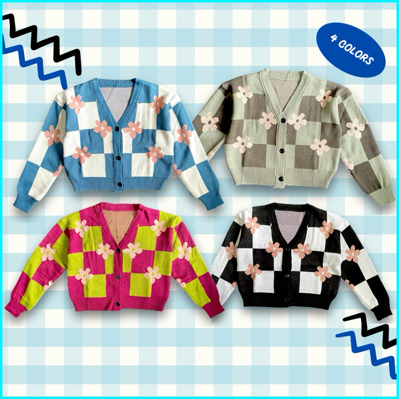 Cardigan Crop Flower Square - Cardigan Rajut Crop Wanita Korean Style