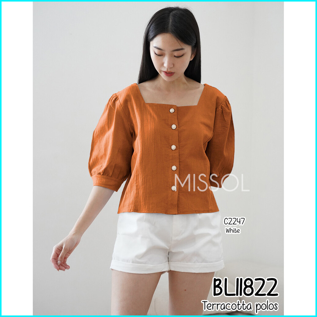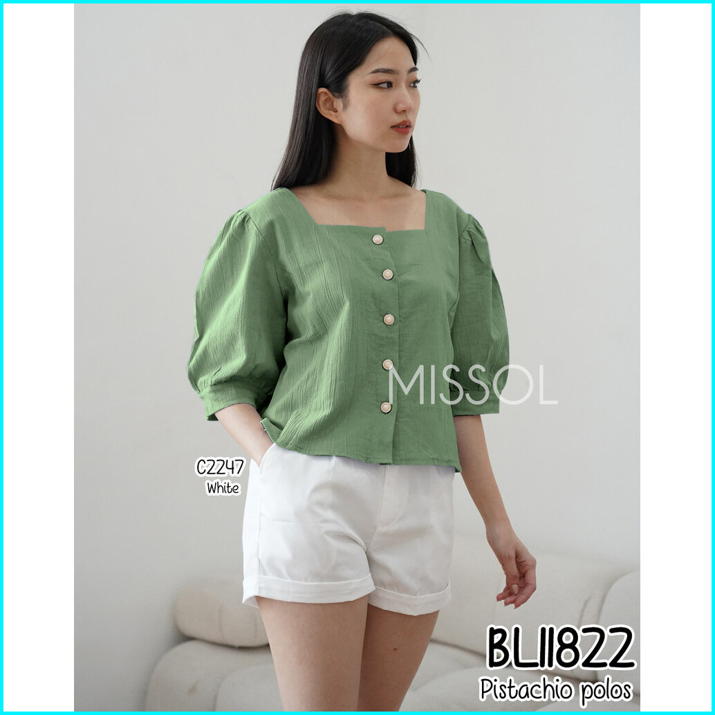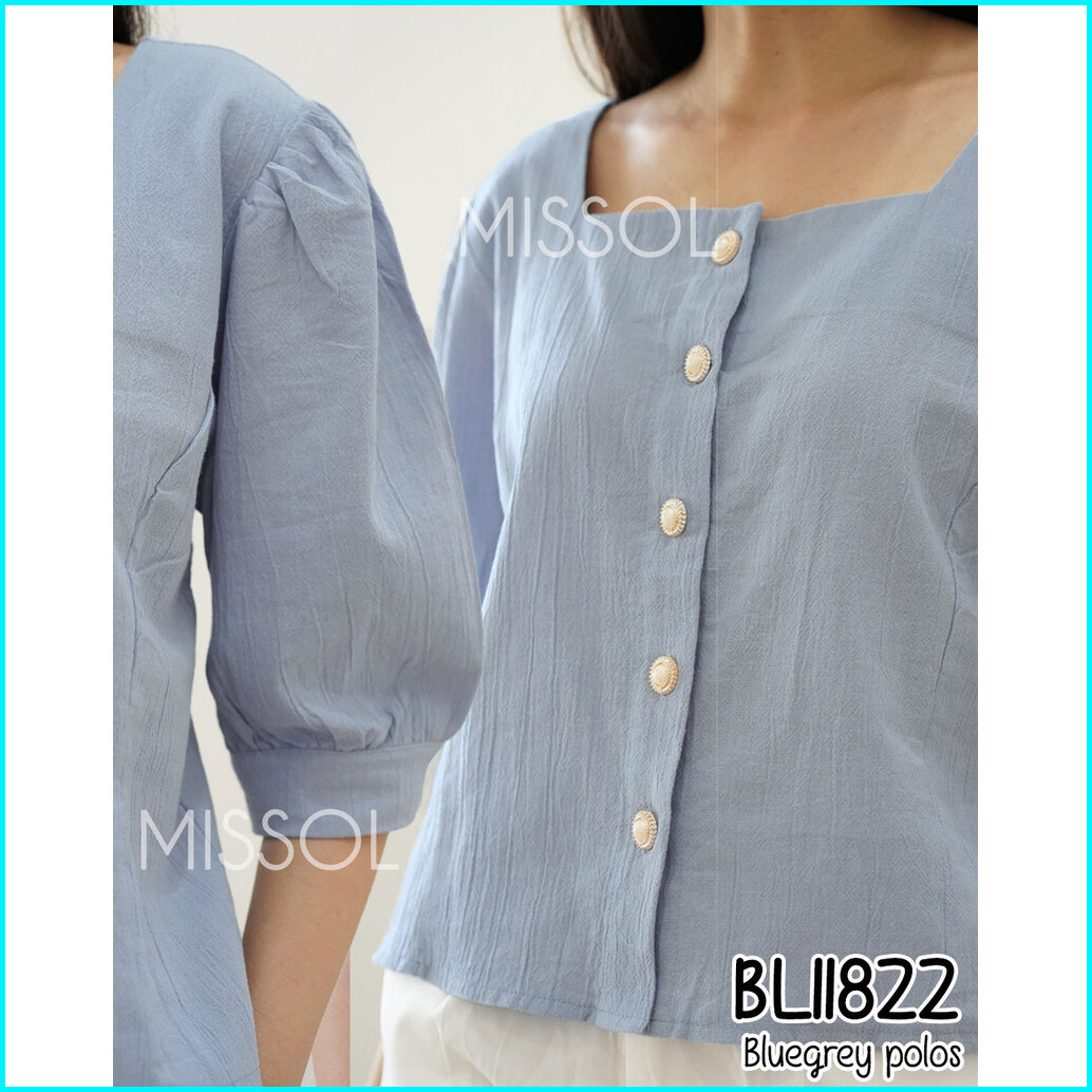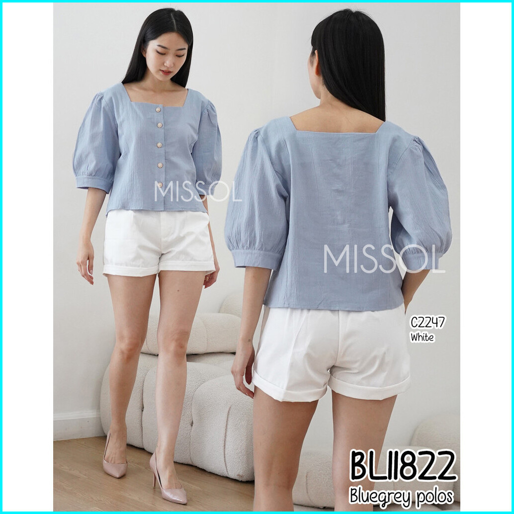 Missol Atasan Linen Wanita Polos Lengan Balon Korean Style Bl11822 11822