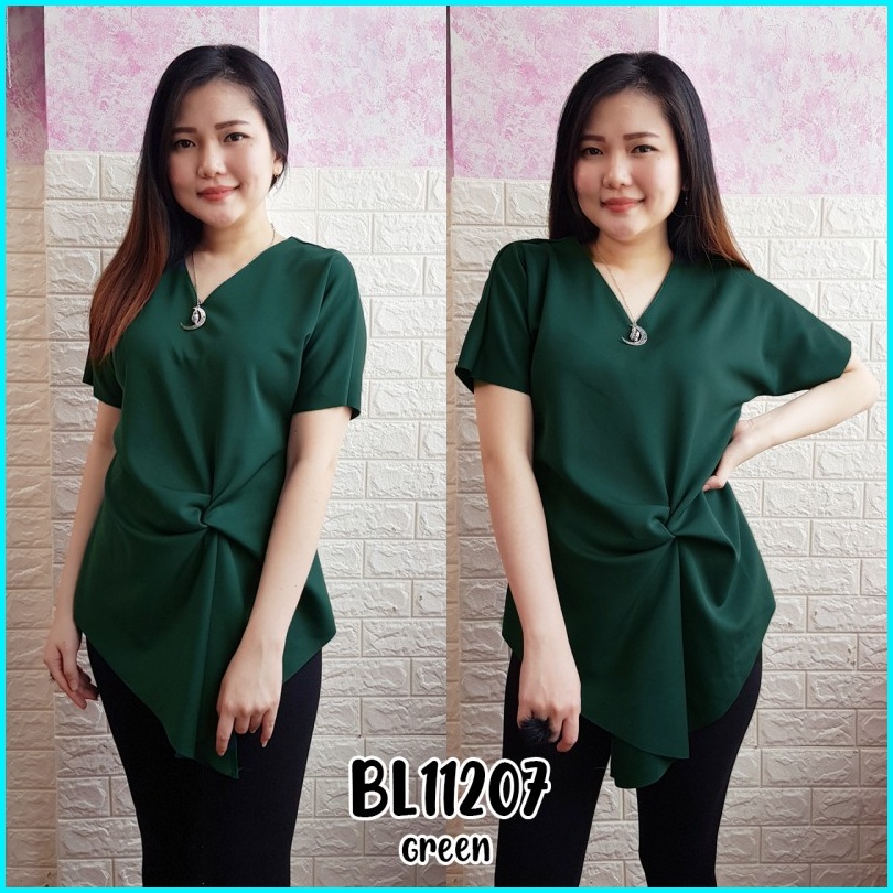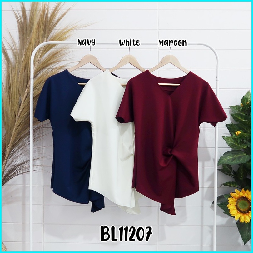 Baju Atasan Blouse Vneck Top Motif Polos Kerja Kantor Casual Top Fashion Cewek Wanita Murah 11207