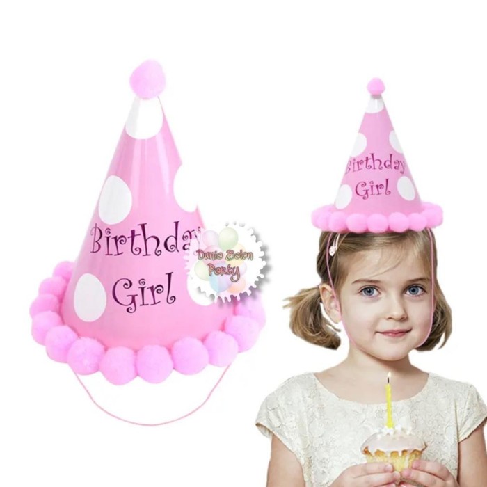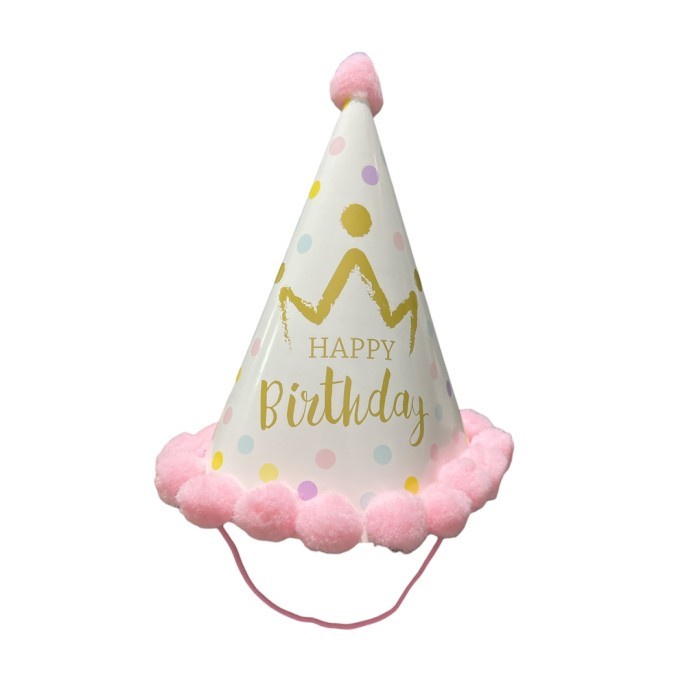 [PROMO] Topi Ulang Tahun Kerucut Pompom / Topi Pesta / Birthday Party Hat