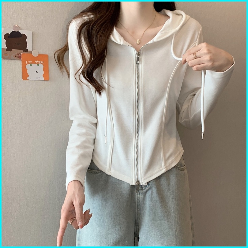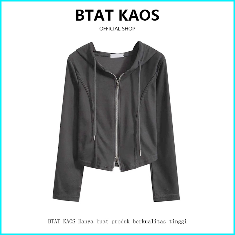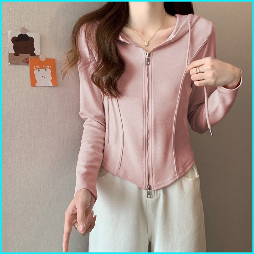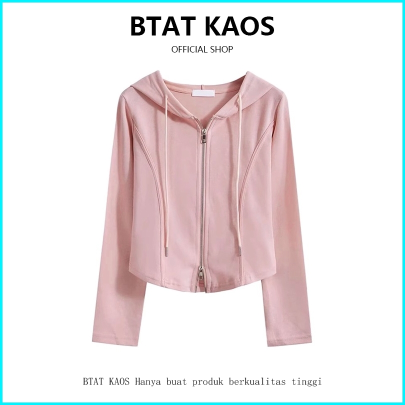 Btat Hoodie Zipper Wanita Crop Cardigan Crop Korean Style Pink Cardigan Crop Top Lucu