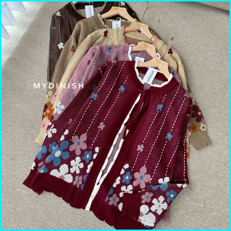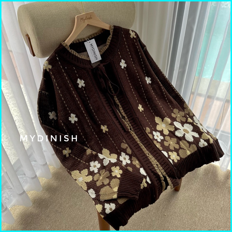 Jima Flower Cardy - Cardigan Rajut Motif Bunga Premium