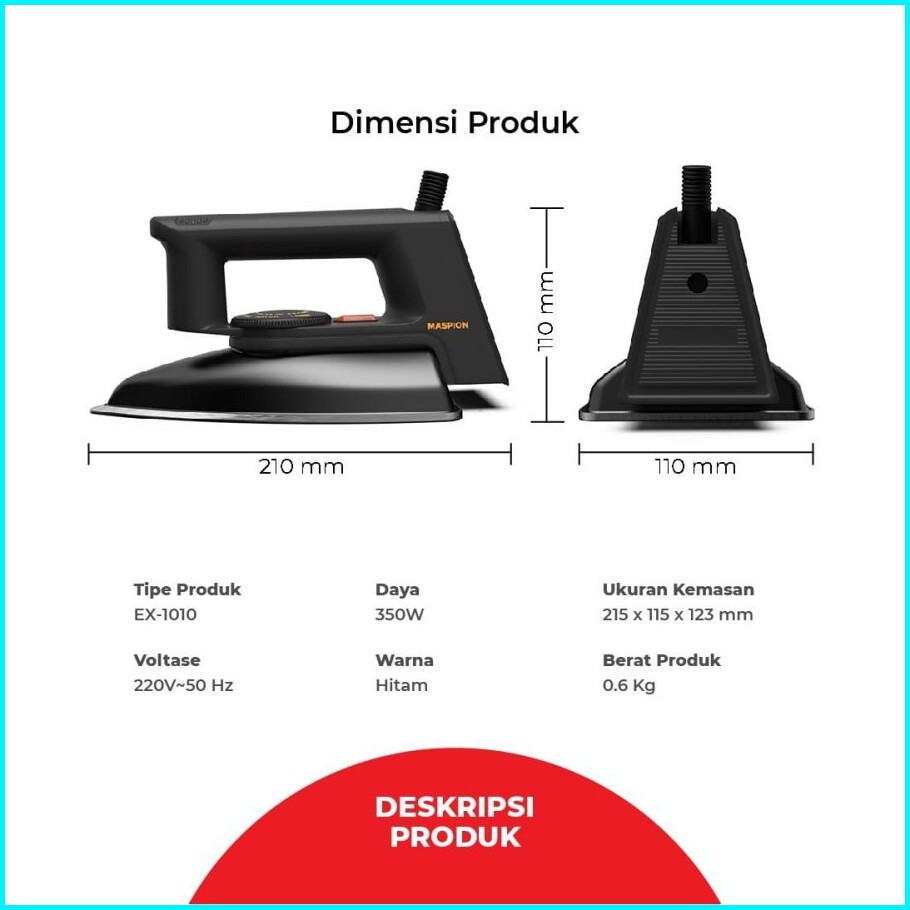 Maspion Setrika Listrik Ex-1010 Blackberry - Gosokan Baju Ex1010 Ex 1010 Murah Garansi Asli Sni