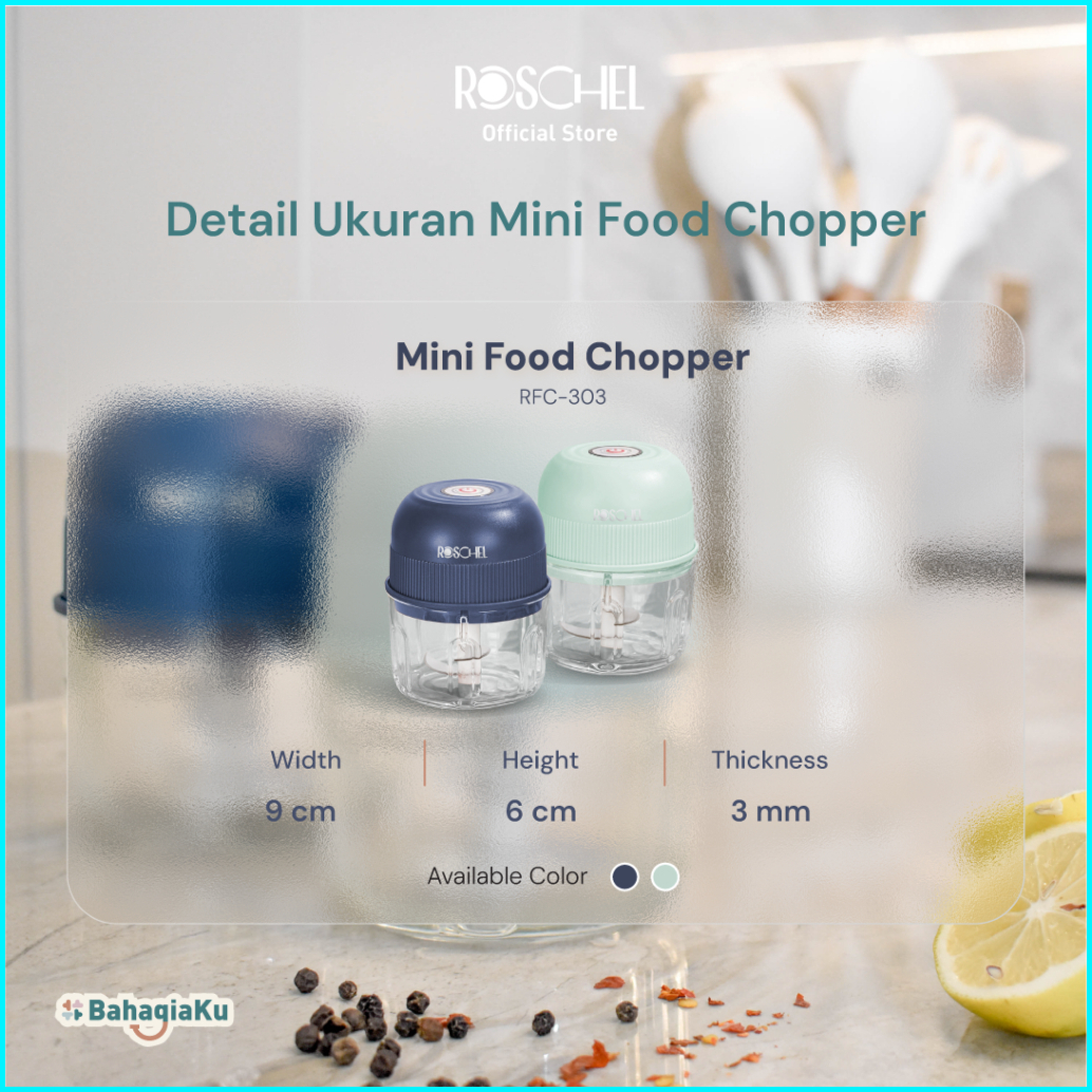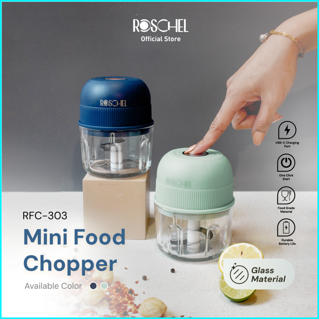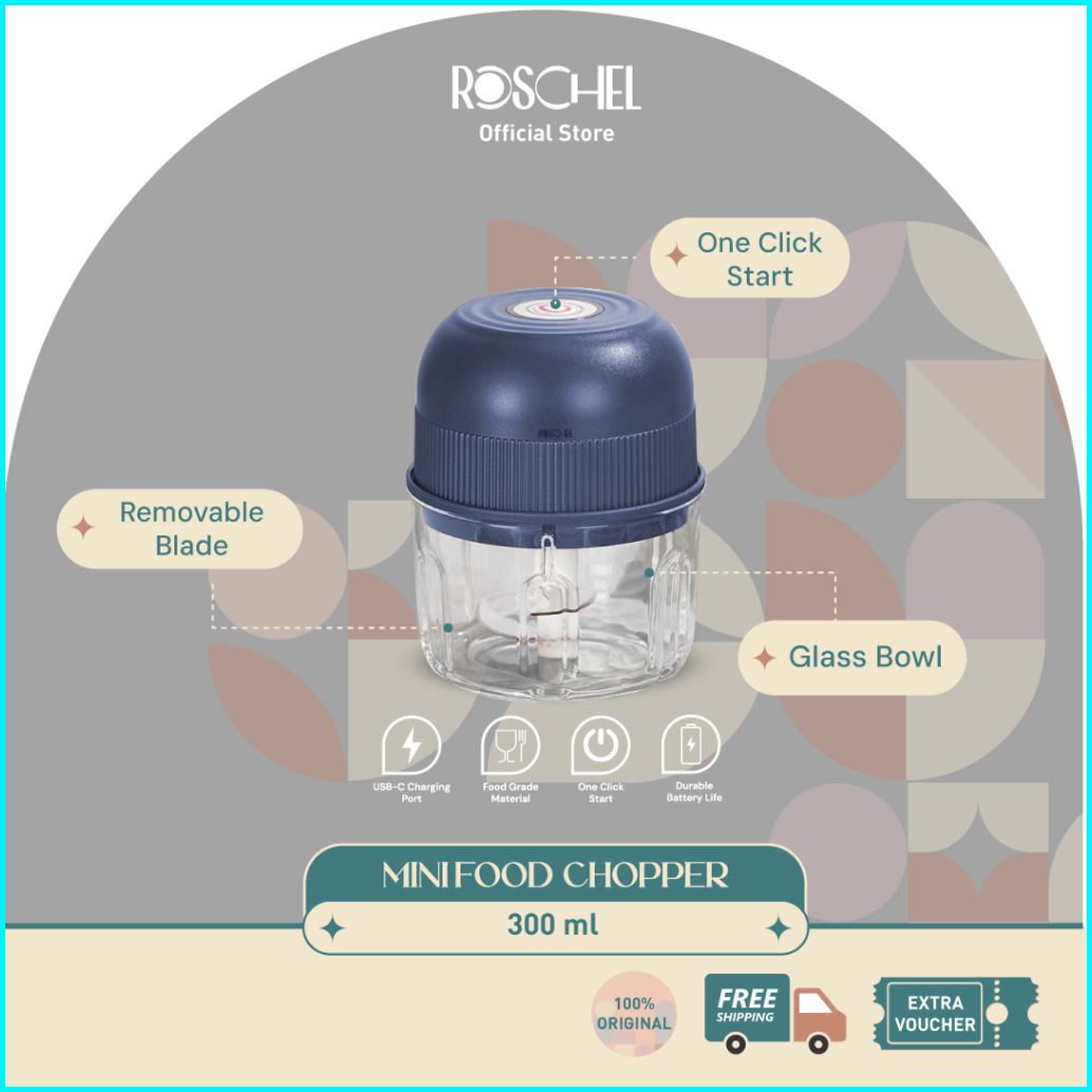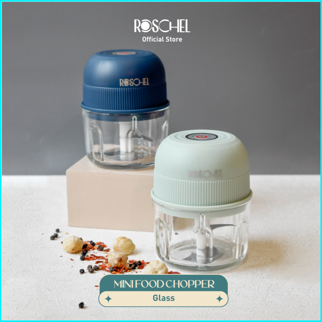 Roschel Mini Food Chopper Kaca 300ml Portable One-touch With Safety Lock Food Grade Food Processor Mpasi Multifungsi Ble