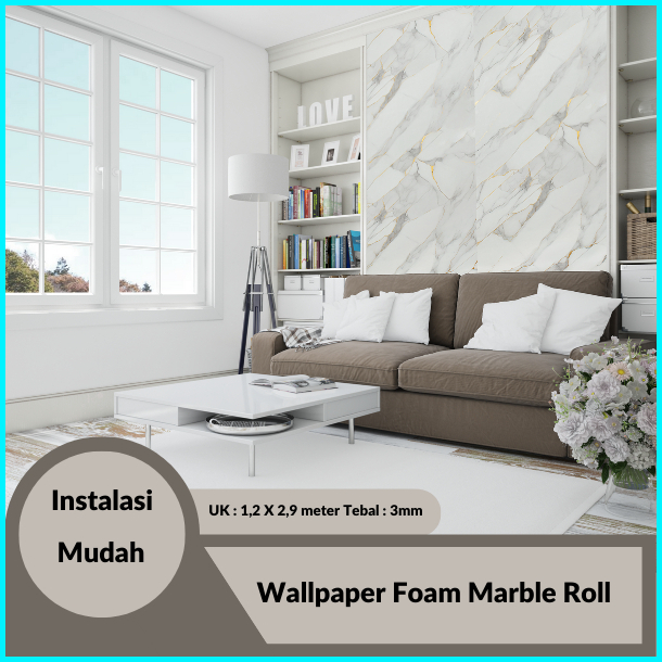 Wallpaper Dinding Vinyl Marble 1.2 X 2.9 Meter Tebal 3mm Wallpaper Dinding Motif Vinyl Marble Foam Roll Sticker Kamar De