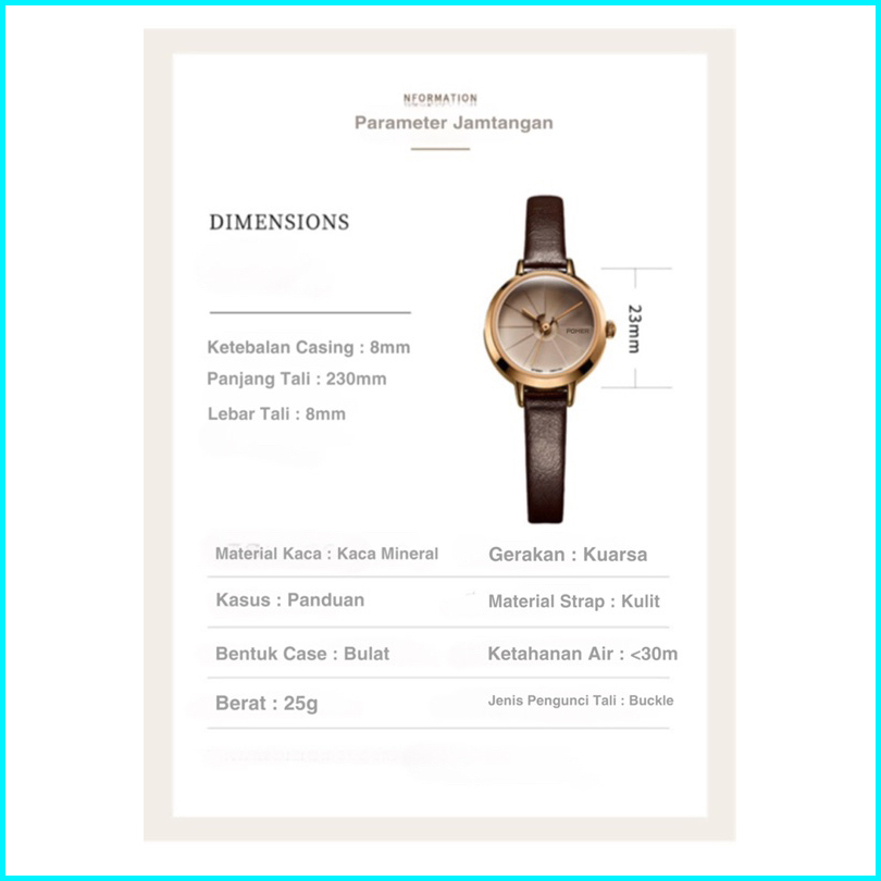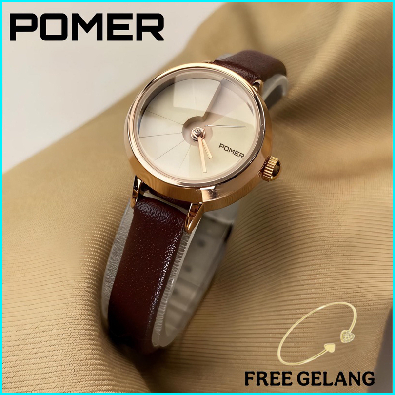 Pomer Jam Tangan Wanita Tali Kulit Original Anti Air Fashion Simple Santai Quartz Elegant Free Gelang