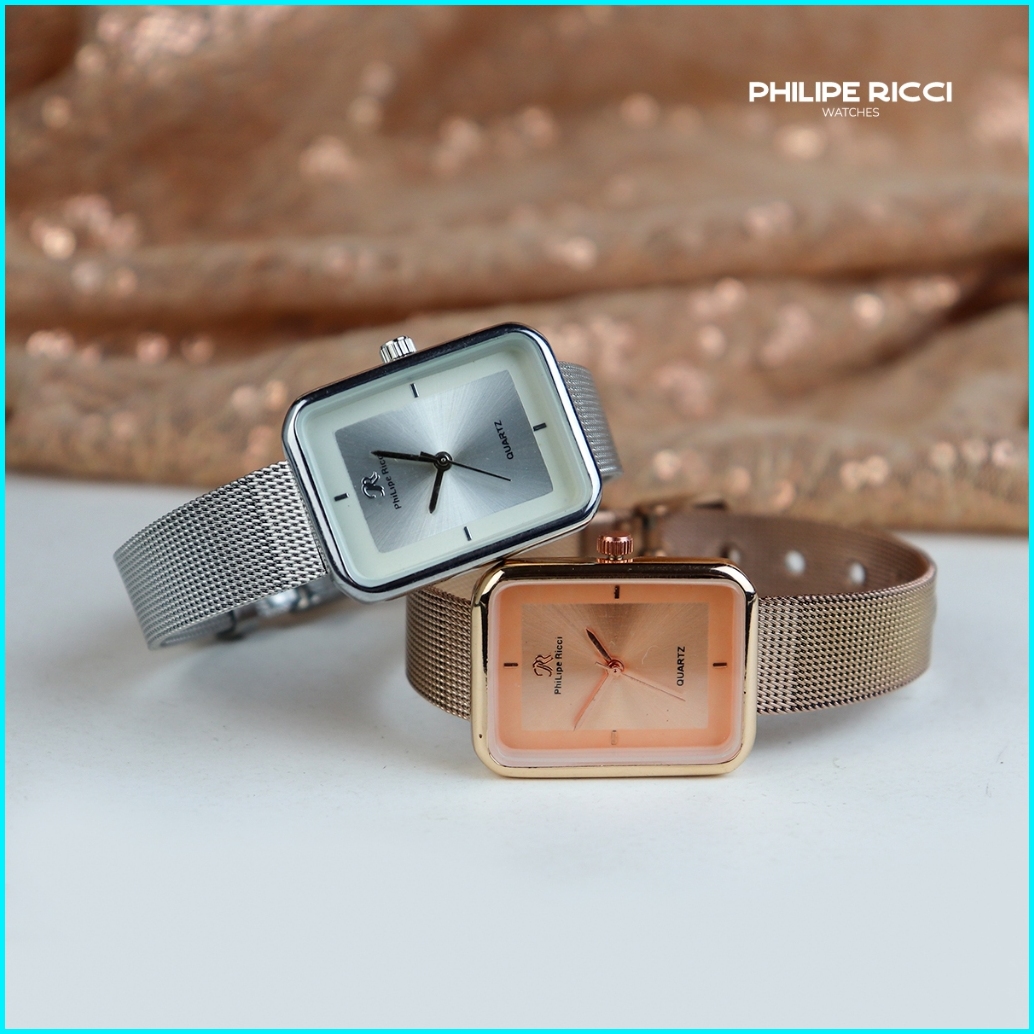 Philipe Ricci Jam Tangan Wanita Kecil Analog Strap Tali Rantai Pasir Diameter Kotak Desain Mewah Model Elegan Mini Terba
