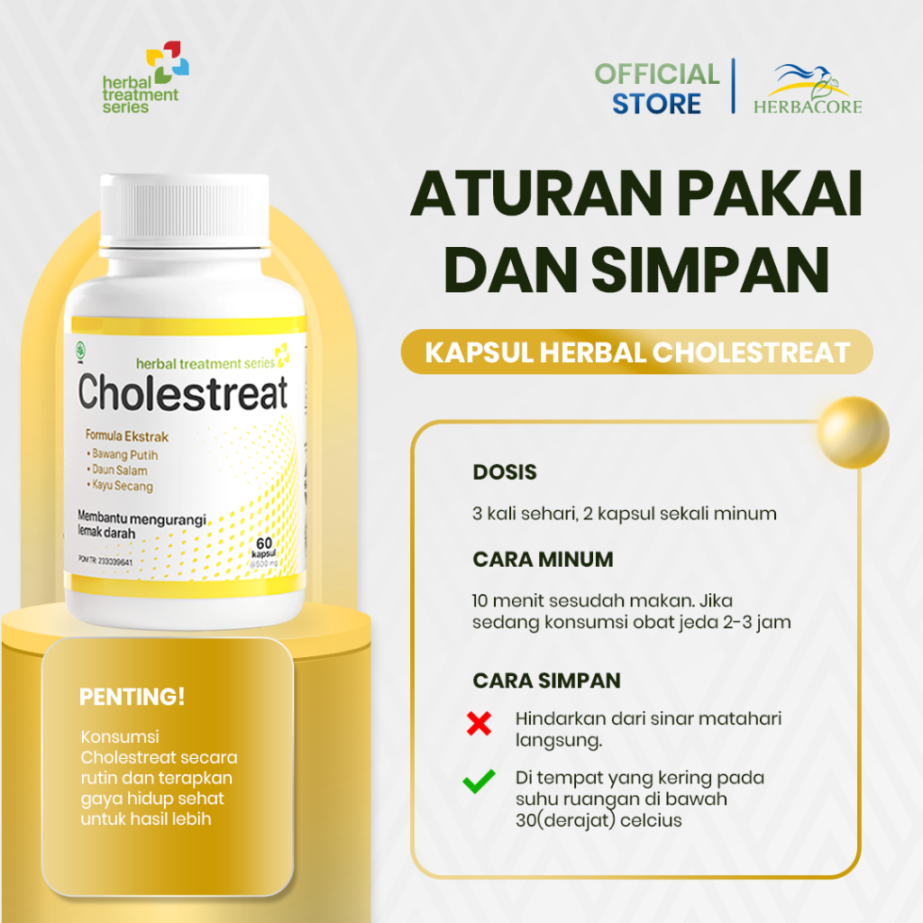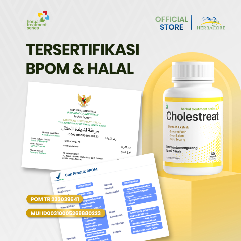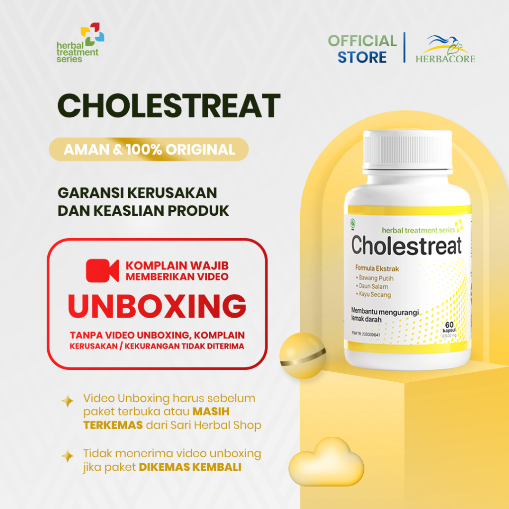 CHOLESTREAT 60 Kapsul Obat Herbal Kolesterol Ampuh Dan Mengatasi Kadar Lemak Darah Tinggi BPOM BEST SELLER
