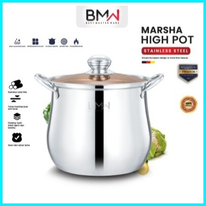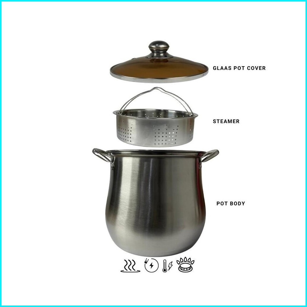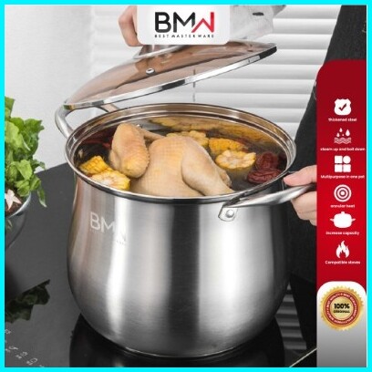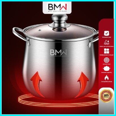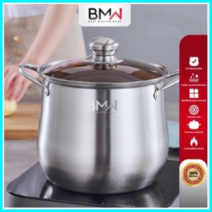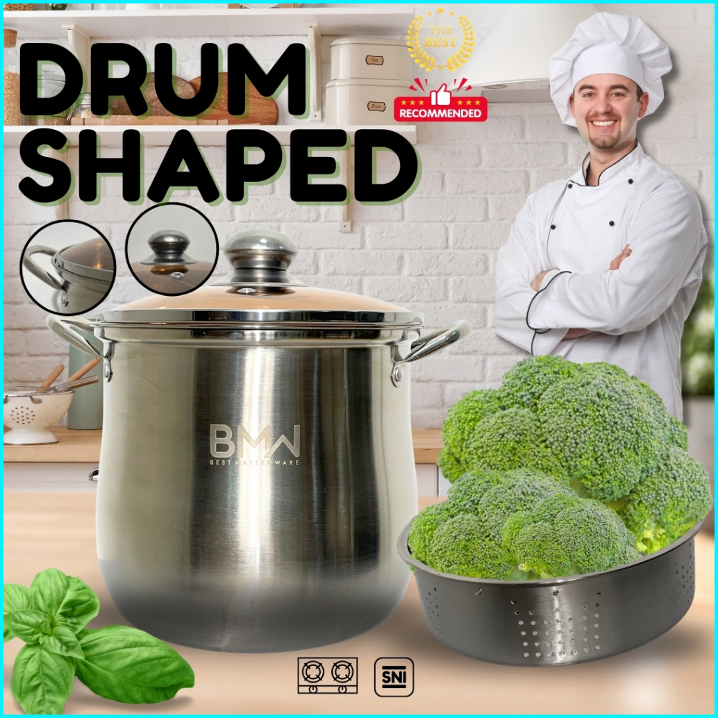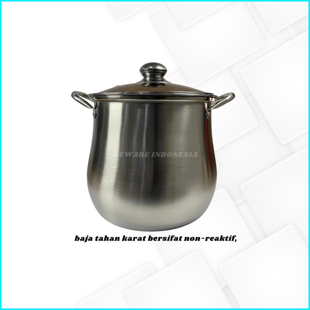Bwi - Panci Gentong Aladin Drum Soup Pot Tutup Kaca Tebal 22cm - Soup Pot Tutup Stainless Steel Anti Karat Kitchenware M