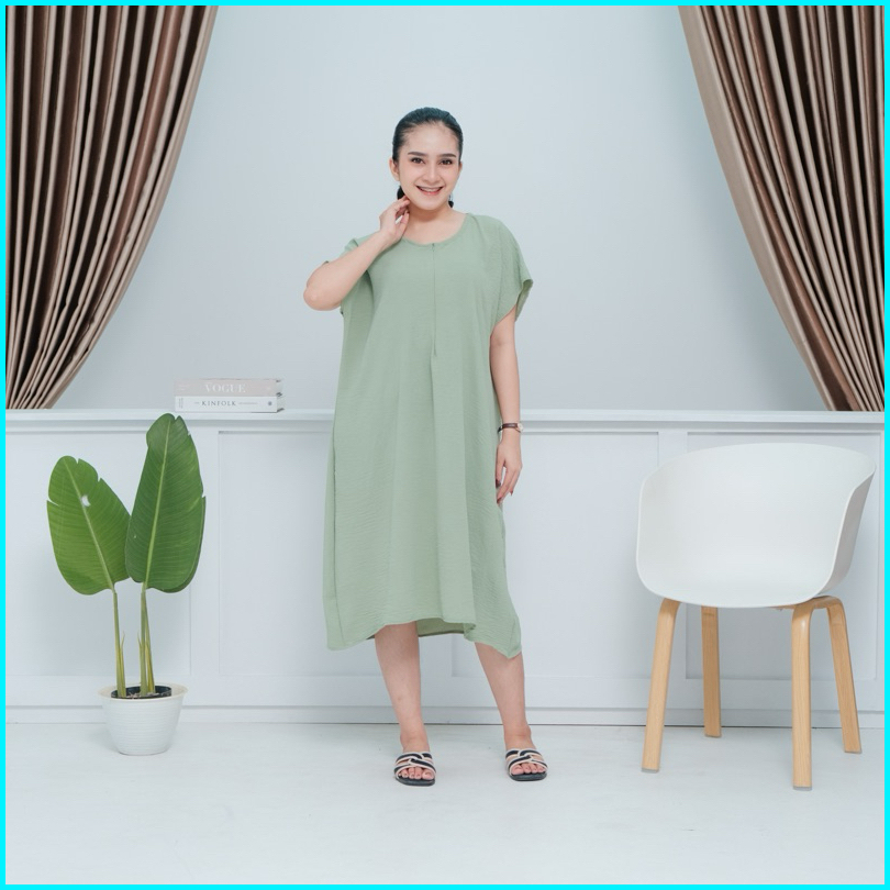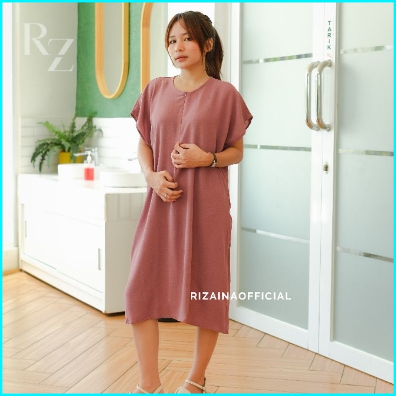 Rizaina - Daster Natasha Jumbo Nyaman Busui Resleting Ld120cm Bahan Airflow Premium
