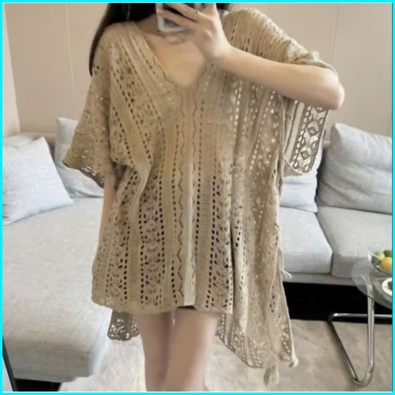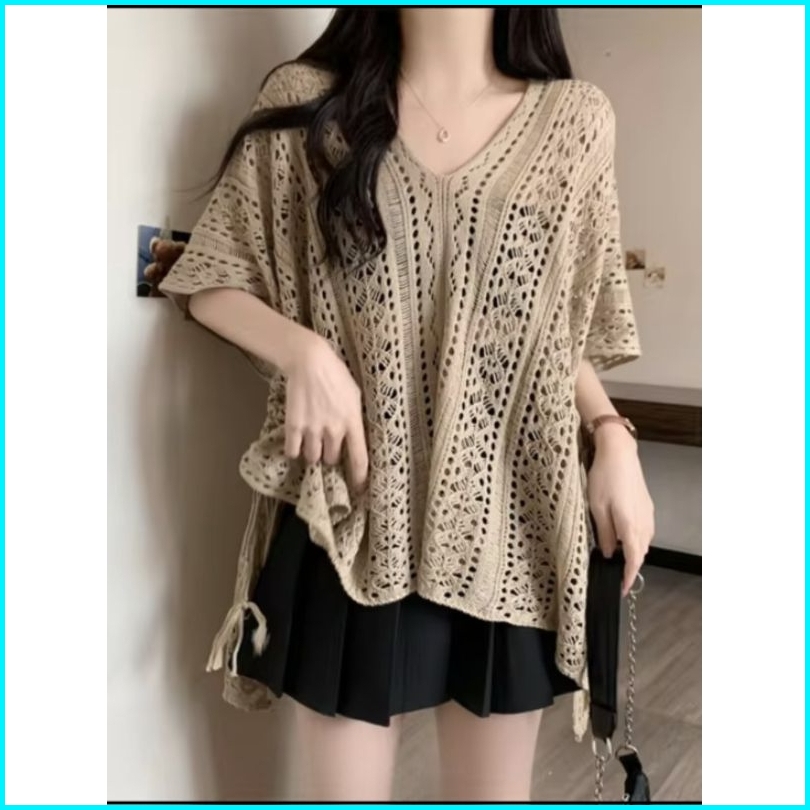 Atasan Blouse Emiola Hollow Out Loose Knit Top Ev-2221