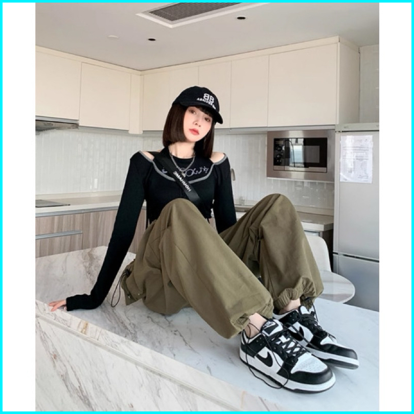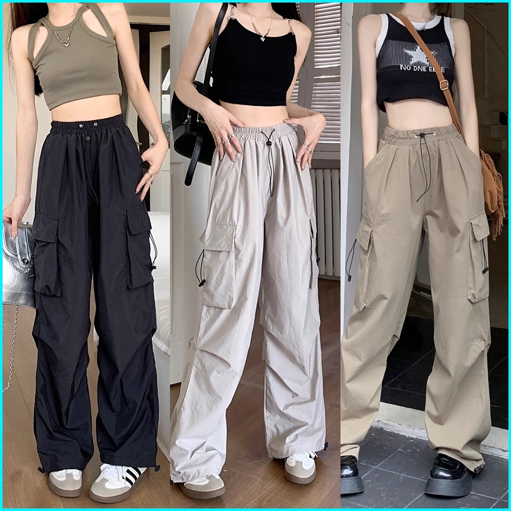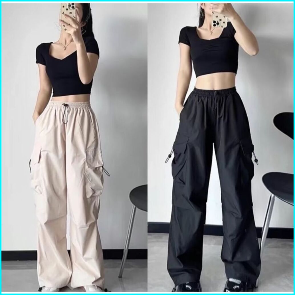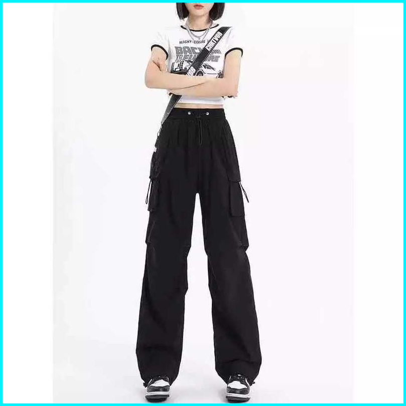 Cargo Pants Wanita Highwaist Loose Pants Korean Style - Celana Cargo Wanita