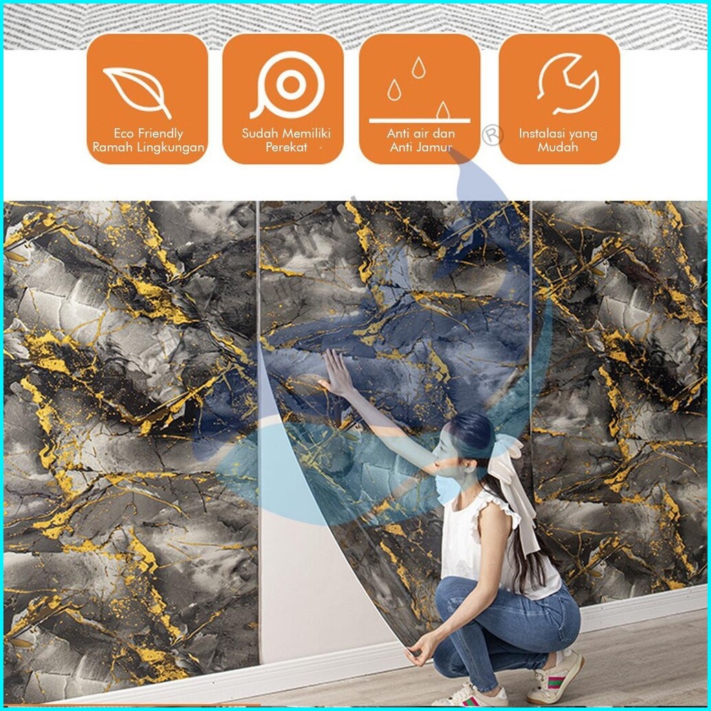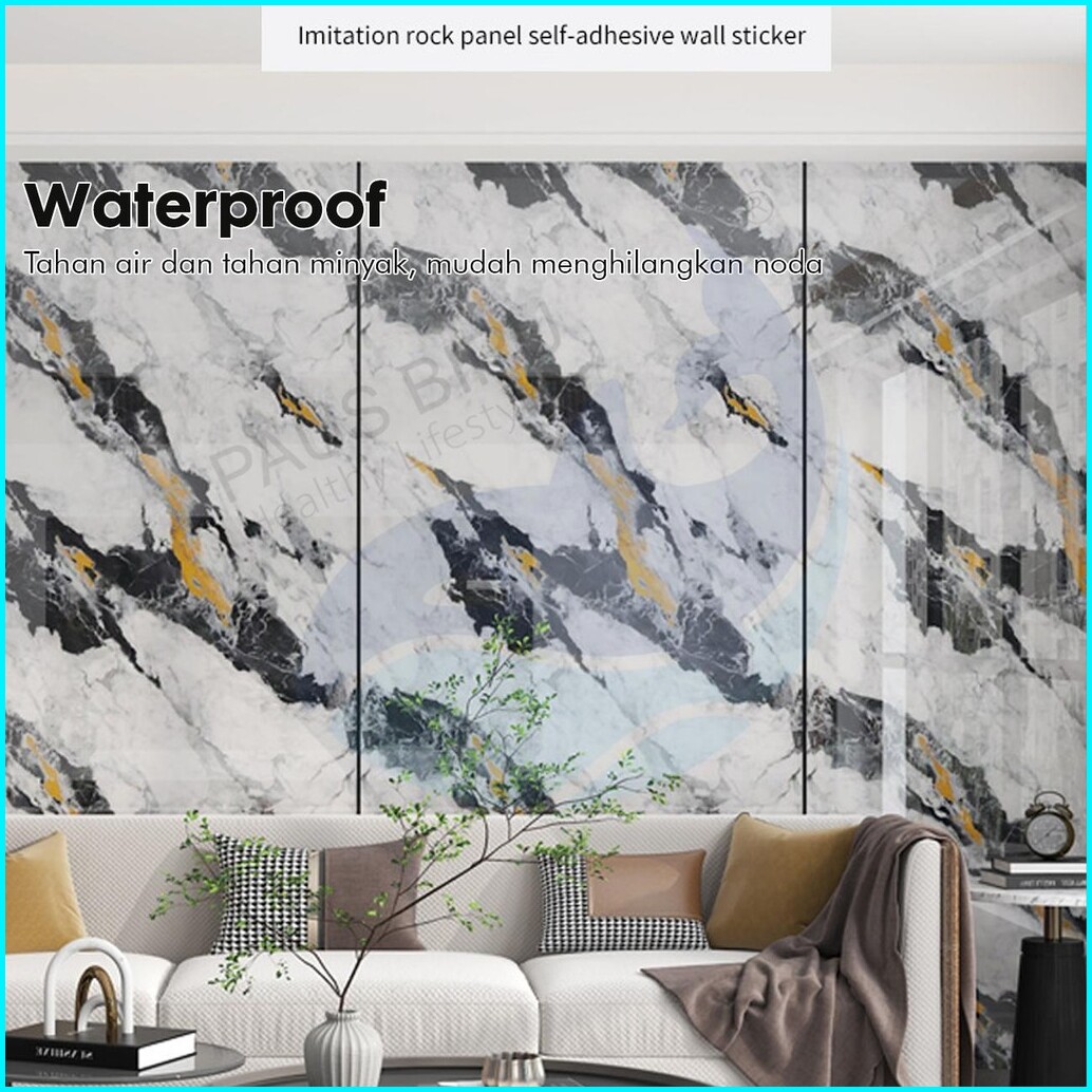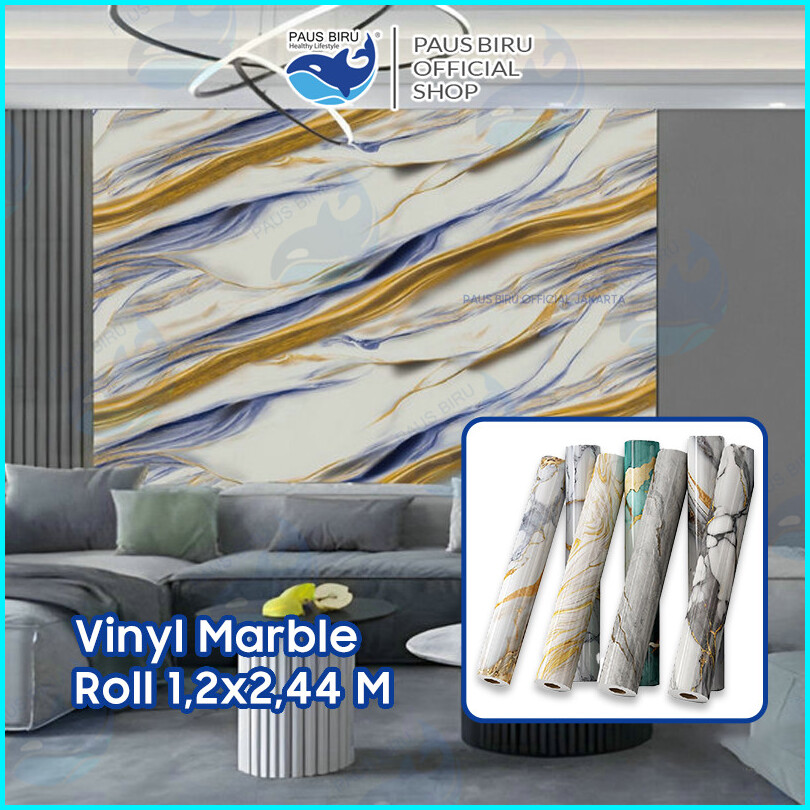 Paus Biru - Wallpaper Dinding Motif Marble Roll Premium120 X 244cm Sticker Dekorasi Kamar Pet Panjang 2.44 Meter A52