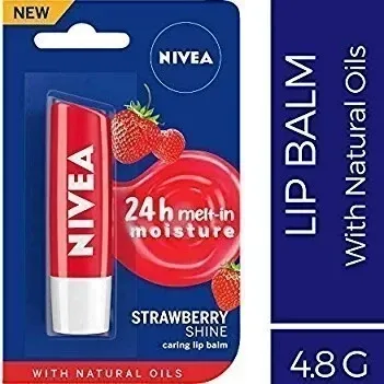 NIVEA Caring Lip Balm Strawberry Shine 4.8Gr | 24h Melt In Moisture