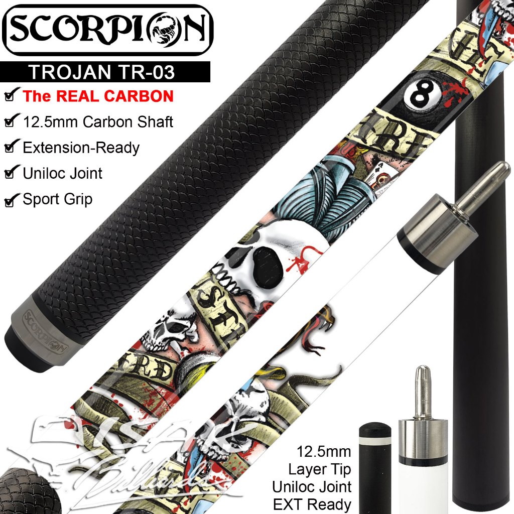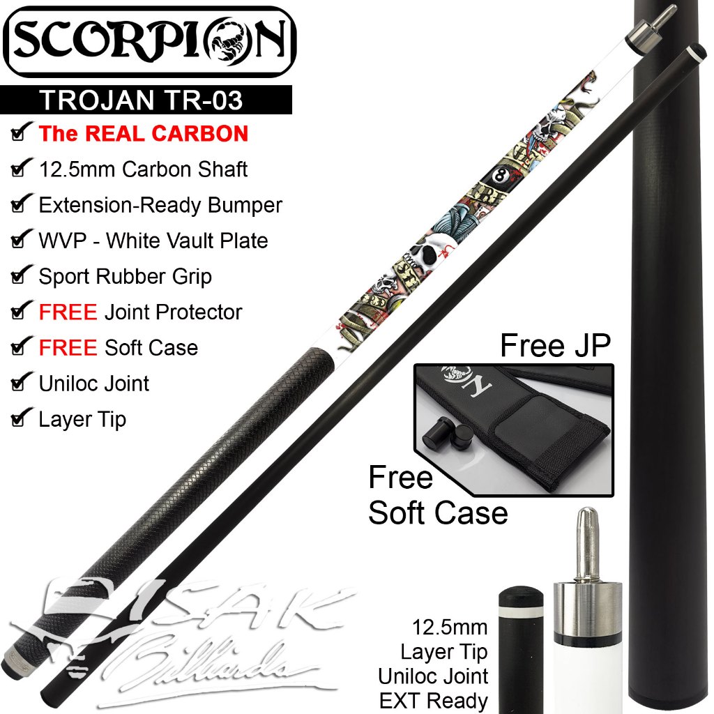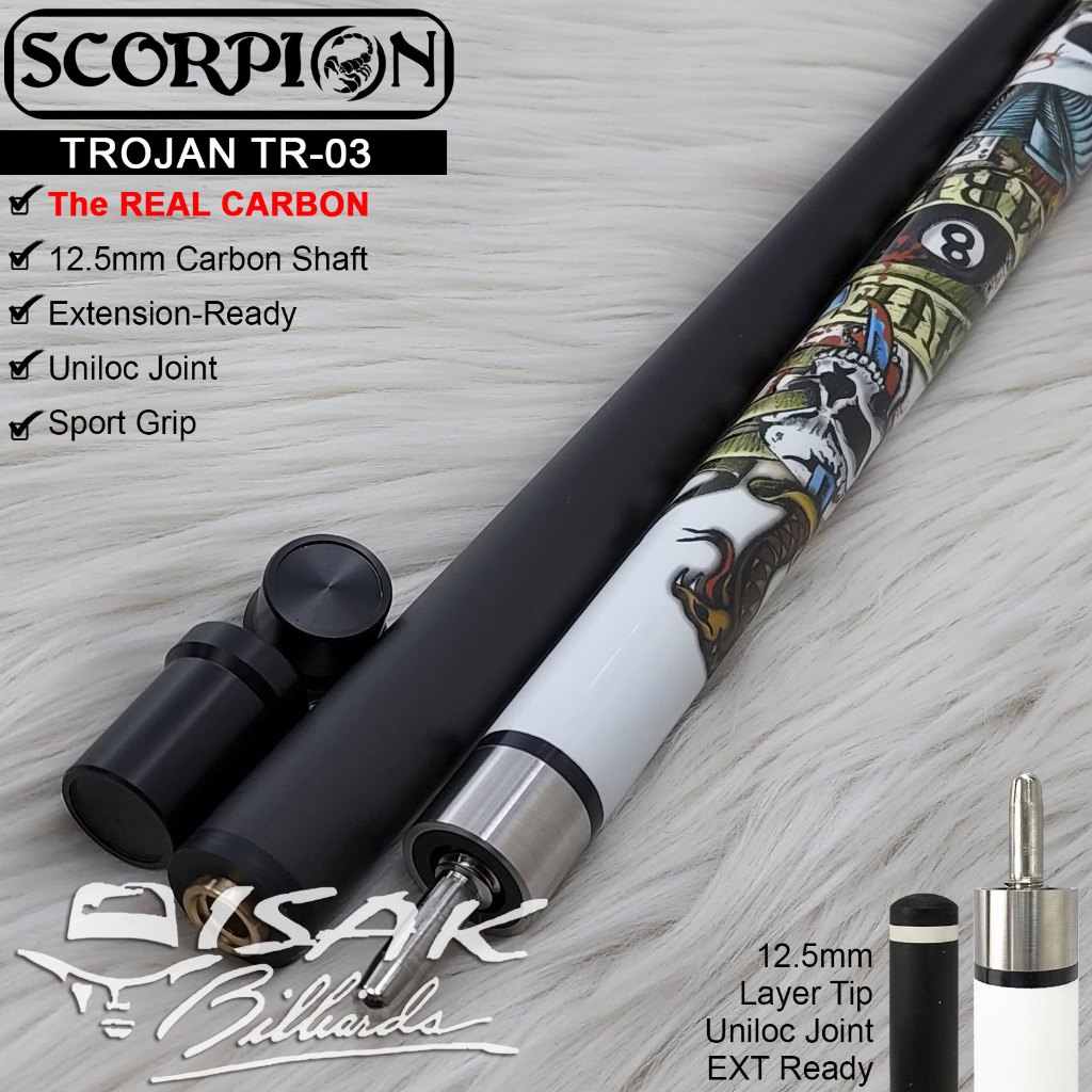 Scorpion Trojan TR-03 Real Carbon Cue Uniloc Low Deflection Stick Karbon Billiard