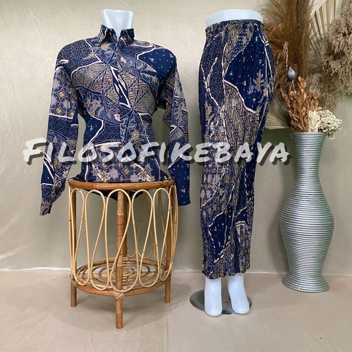 FILOSOFI KEBAYA - BATIK COUPLE ROK PLISKET BATIK KONDANGAN BAJU KEMEJA BATIK PESTA LENGAN PANJANG BATIK COUPLE MODERN