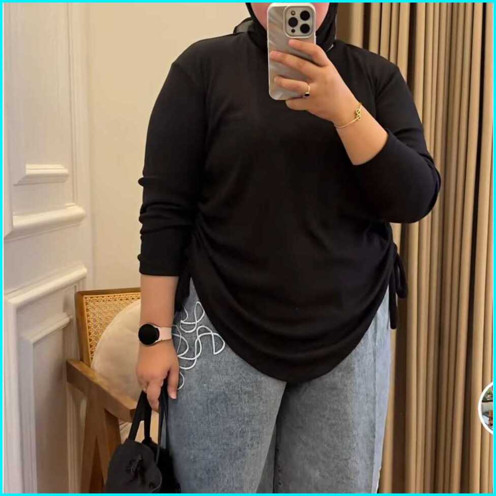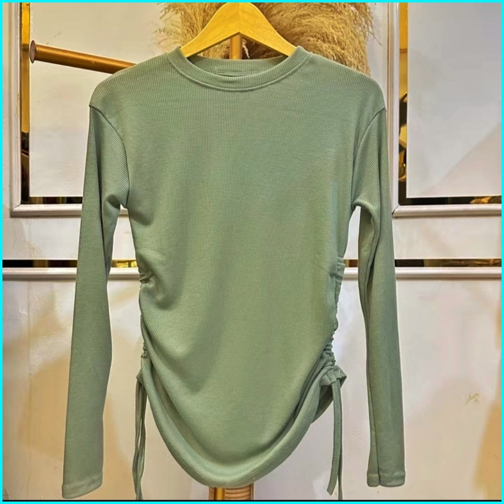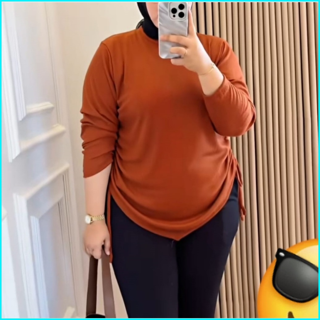 Top Blouse Jumbo Serut Samping Kiri Kanan Atasan Knit Tali Serut Lengan Panjang Model Korea