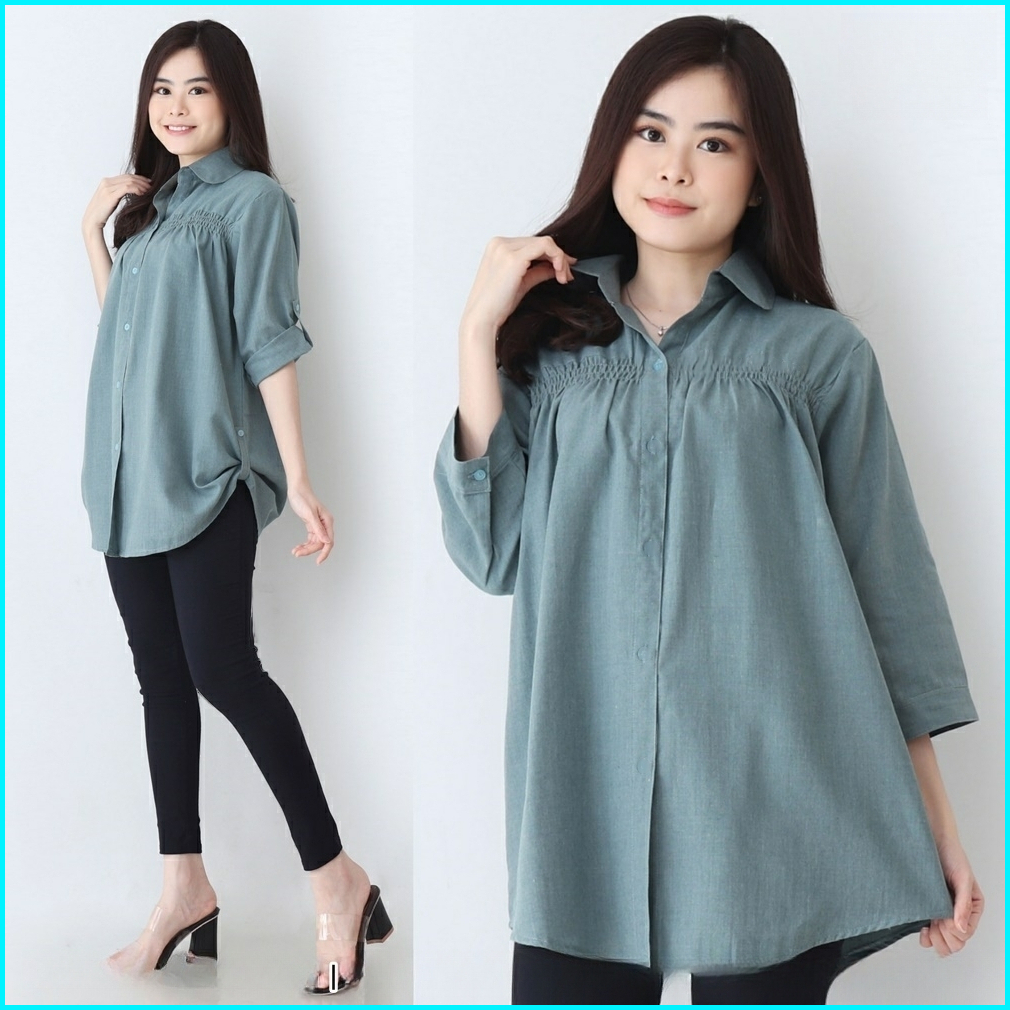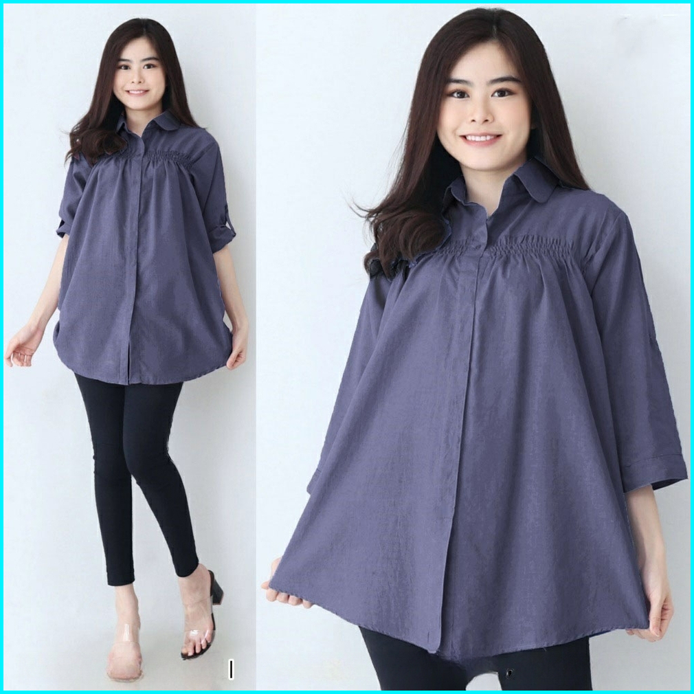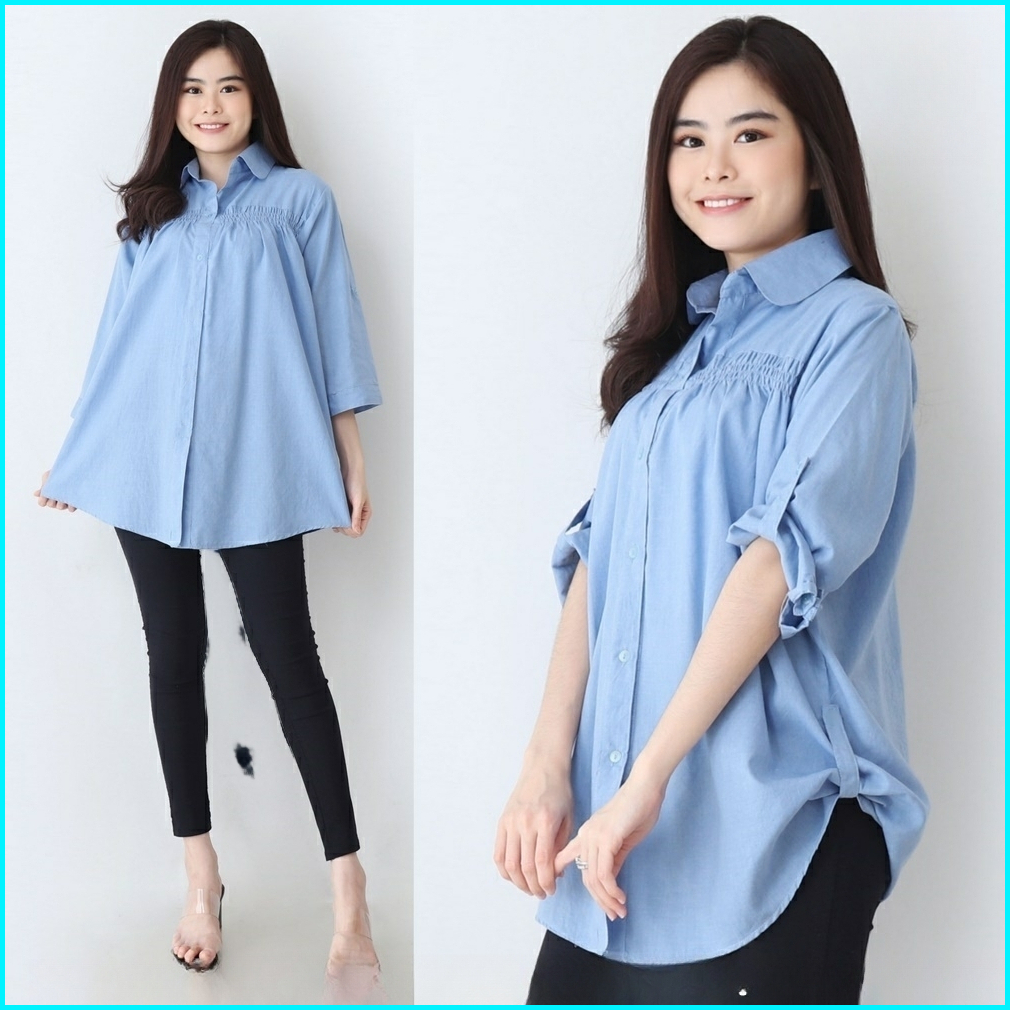 Yohen Kemeja Wanita Jumbo Denim Atasan Wanita Big Size