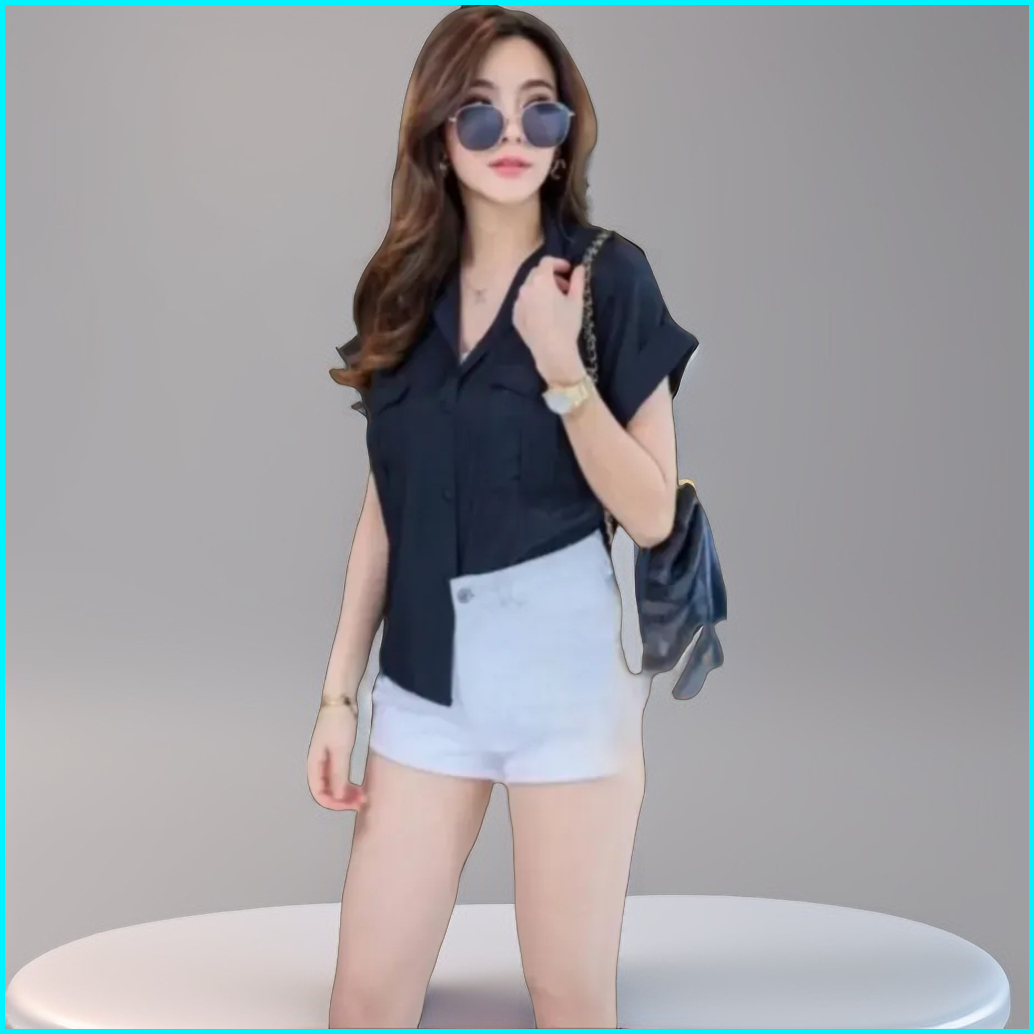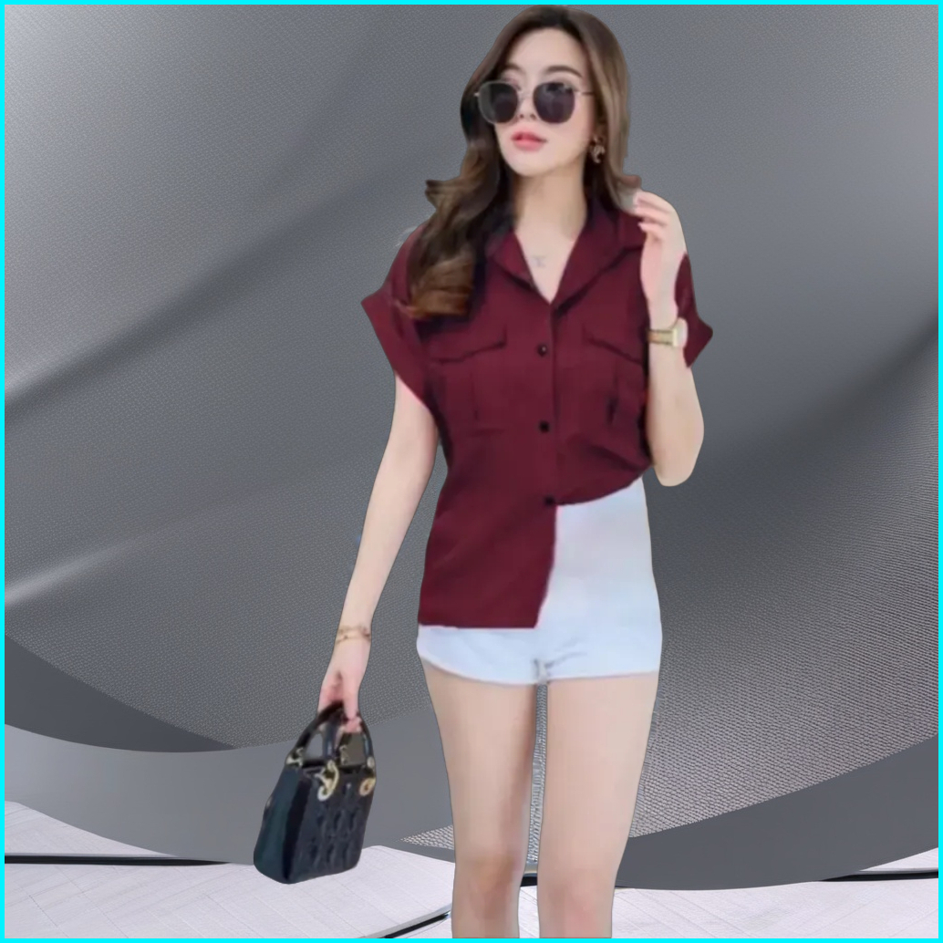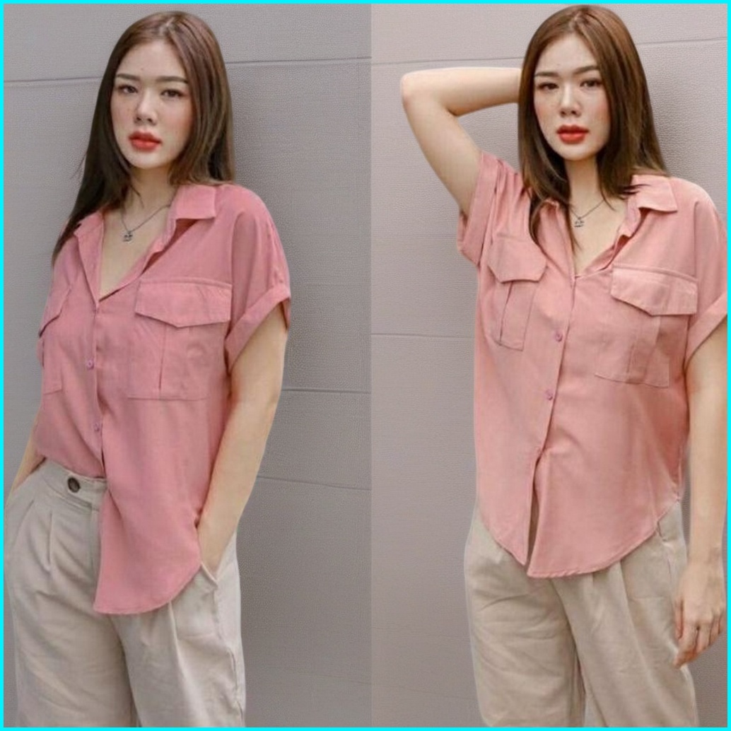 Key - 0545 Kem Agnes Size Xl Wolfis Premium Atasan Kemeja Blouse Wanita Full Kancing Saku Wolfis Premium Gq