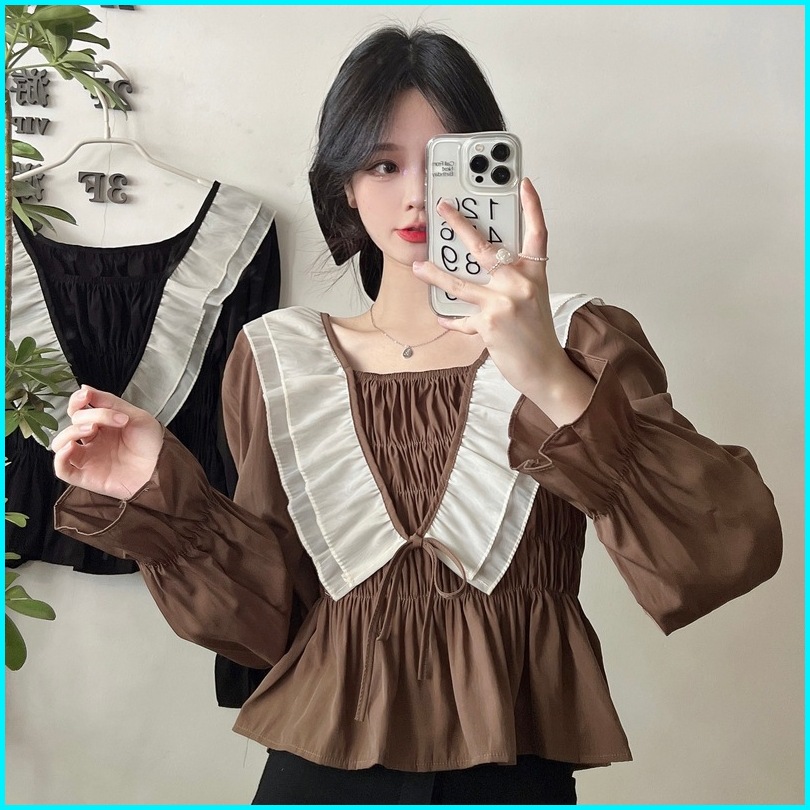 Yikoo-blouse Korea Temperamen Atasan Wanita Fashion Top