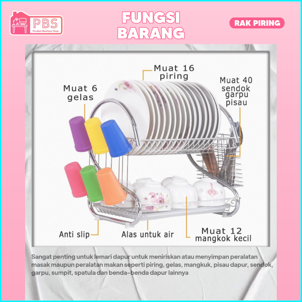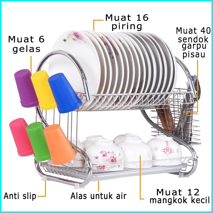 Perabot Rak Piring Stainless 2 Susun Rak Peralatan Dapur 2 Tingkat Termurah
