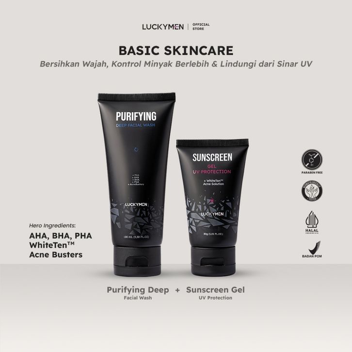 UPGRADE FORMULA Basic Skincare - 1 Pcs Facial Wash, 1 Pcs Sunscreen Gel - Mencegah Jerawat dan Melindungi Kulit dari Pa