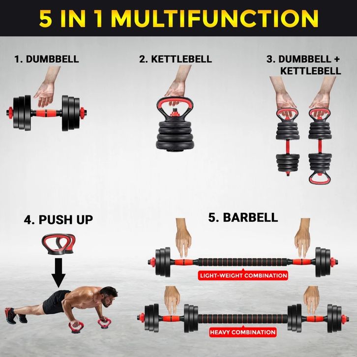 Barbel Barbel Original Pengiriman dari Surabaya KUCA Dumbbell Set 20kg /5 IN1Dumbell/Adjustable Barbell Alat Angkat Beb
