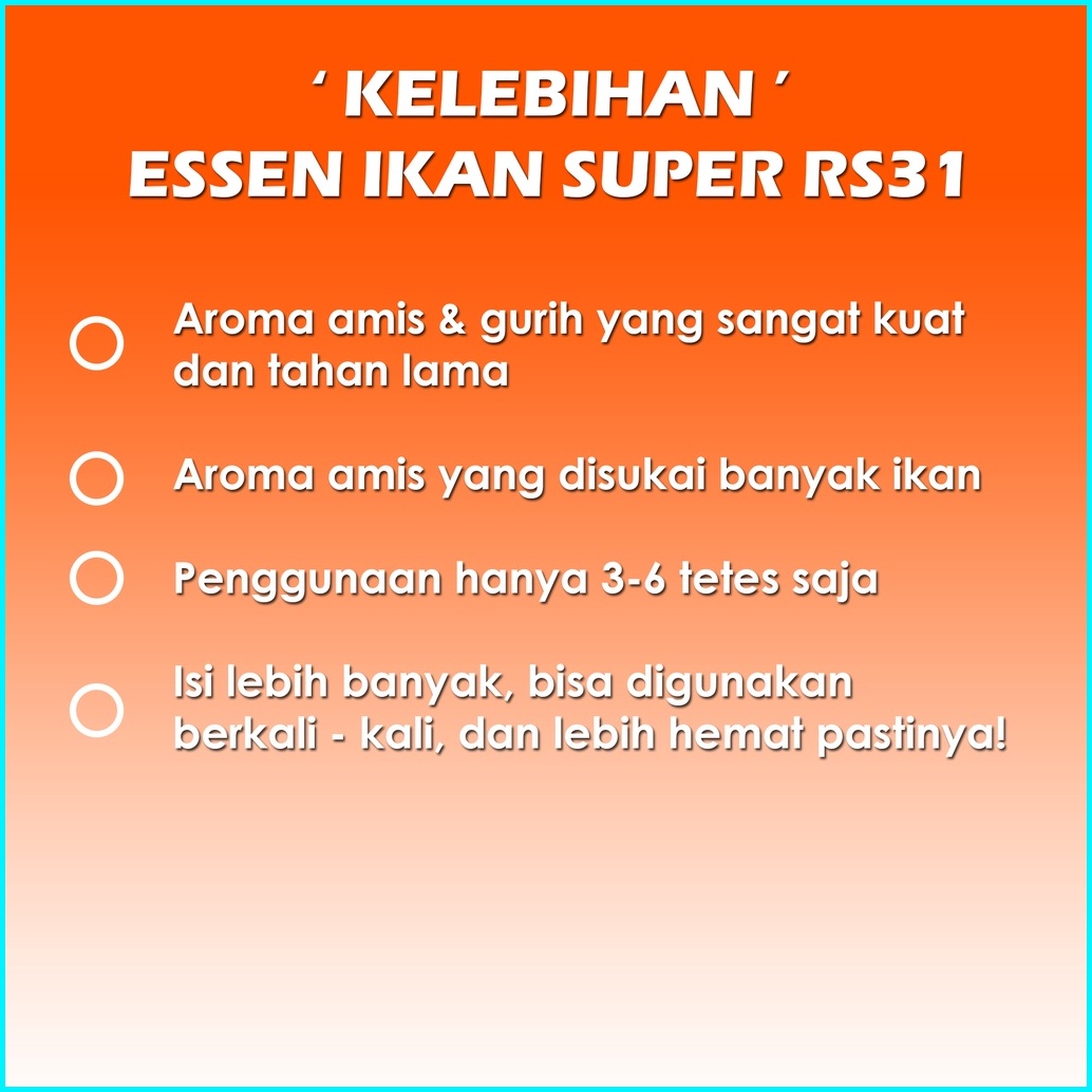 Essen Ikan Super Rs31 - Essence Pancing Aroma Gurih Amis Untuk Indukan Babon Dari Ikan Lele Tombro Nila Bawal Belut Sida