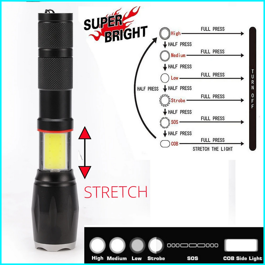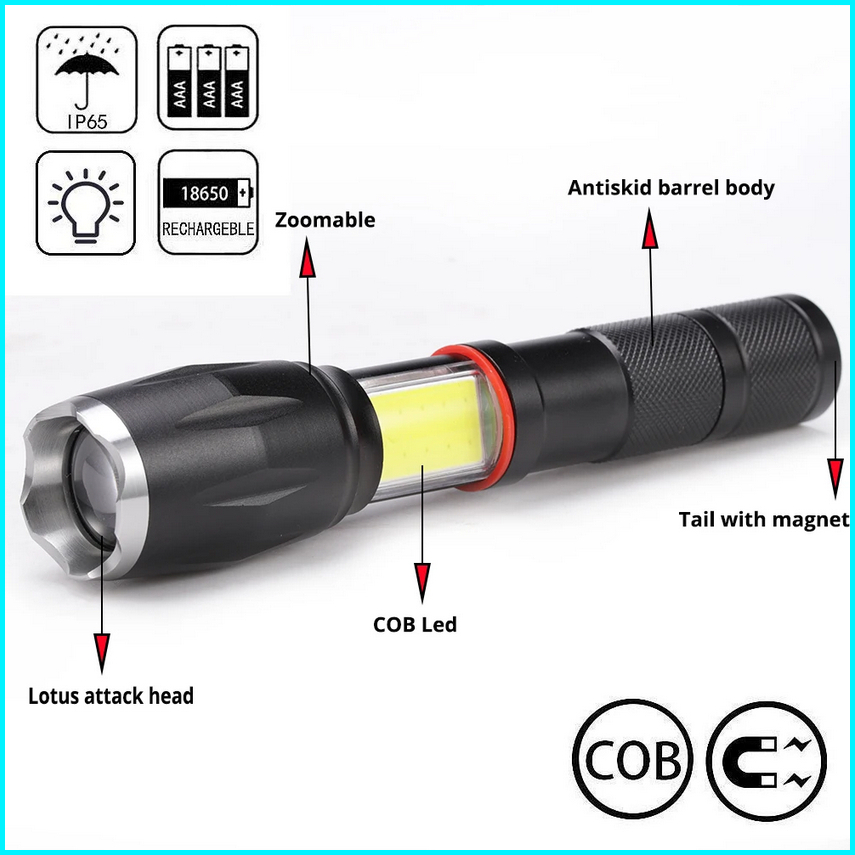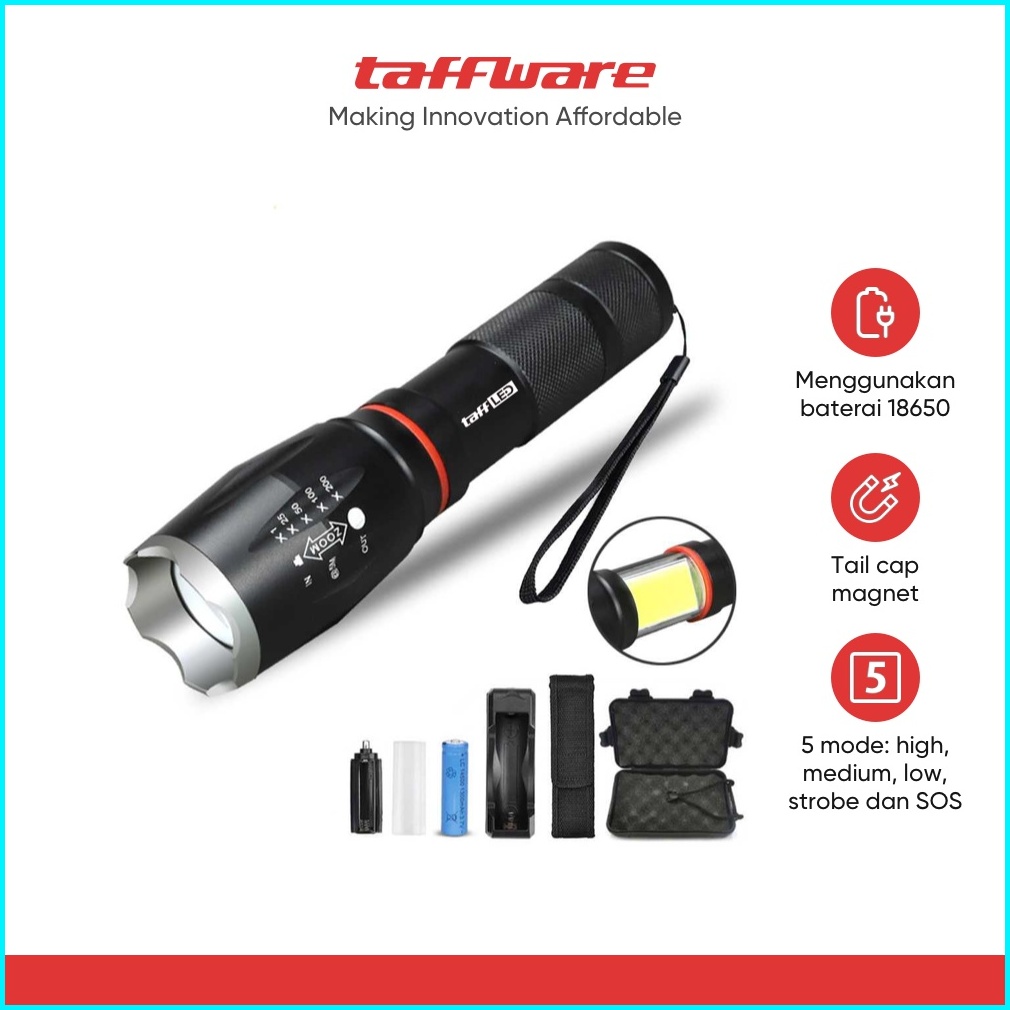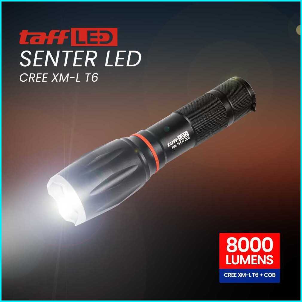 Taffled Paket Senter Led Torch Cree Xm-l T6 8000 Lumens Charger Box - E17 Cob