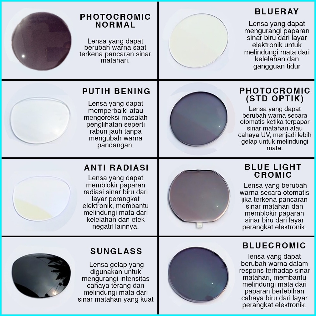 Photocromic NORMAL, Phtocromic+AR normal, - 0.50 photocromic, - 0.75 photocromic, - 1.00 photocromic, - 1.25 photocromic, - 1.50 photocromic, - 1.75 photocromic, - 2.00 photocromic, - 2.25 photocromic, - 2.50 photocromic, - 2.75 photocromic, - 3.00 photocromic, - 3.50 photocromic, - 4.00 photocromic, - 4.50 photocromic, - 5.00 photocromic, R/L beda photocromic, +0.50s/d +3.00 photo, Anti Radiasi Normal, - 0.50 AR, - 0.75 AR, - 1.00 AR, - 1.25 AR, - 1.50 AR, - 1.75 AR, - 2.00 AR, - 2.25 AR, - 2.50 AR, - 2.75 AR, - 3.00 AR, - 3.50 AR, - 4.00 AR, - 4.50 AR, - 5.00 AR, Kanan/Kiri Beda AR, Plus 1.00 ar, Plus 1.25 ar, Plus 1.50 ar, Plus 1.75 ar, Plus 2.00 ar, Plus 2.25 ar, Plus 2.50 ar, Plus 2.75 ar, Plus 3.00 ar