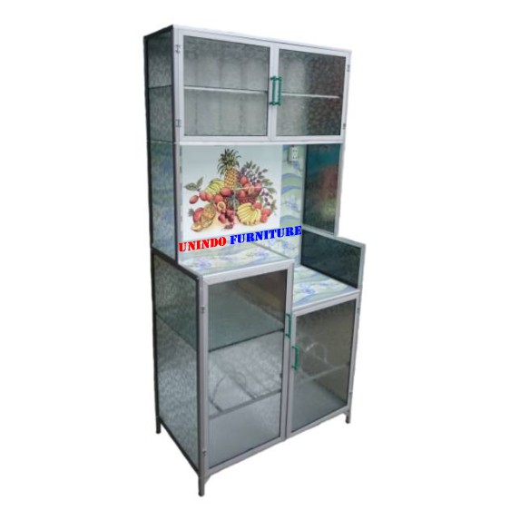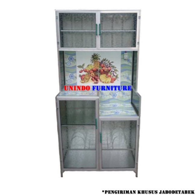 Lemari Piring Alumunium Rak Magicom Rak Piring Lemari Dapur Keramik Aluminium 2 Pintu Kaca