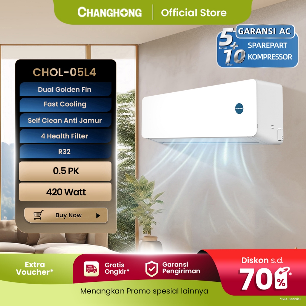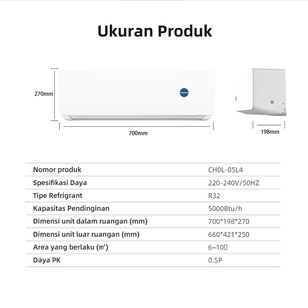 [Mall] AC 1/2 PK STANDARD CHANGHONG CHOL-05L4 [INDOOR + OUTDOOR UNIT ONLY] [FAST COOLING] [SLEEP MODE] [ECO MODE]]
