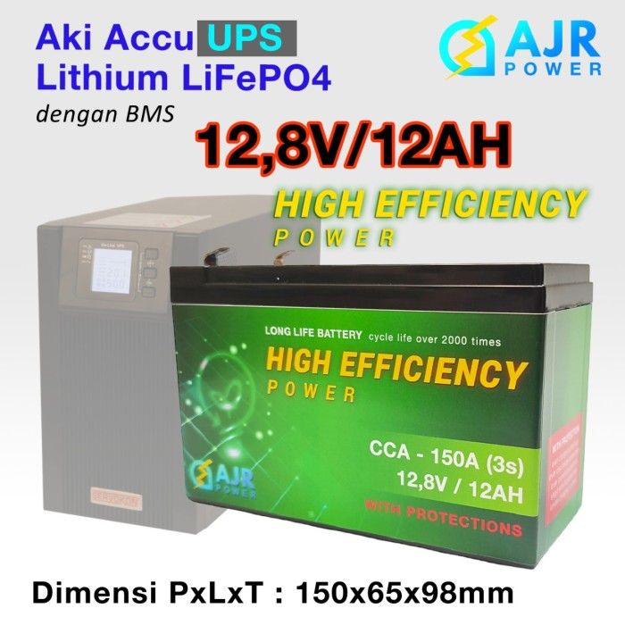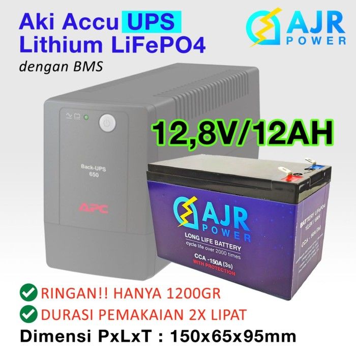 Aki Accu UPS Lithium LiFePo4 12V 12AH dgn BMS 1250g awet