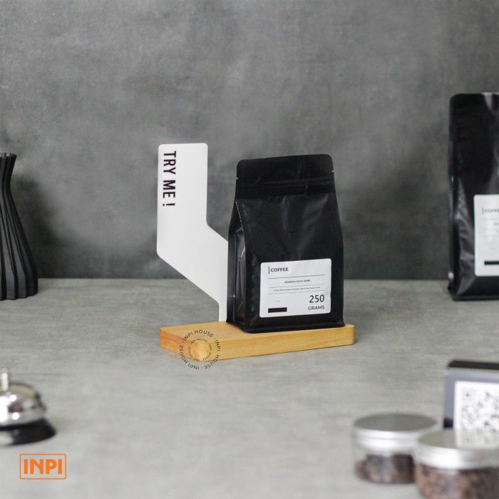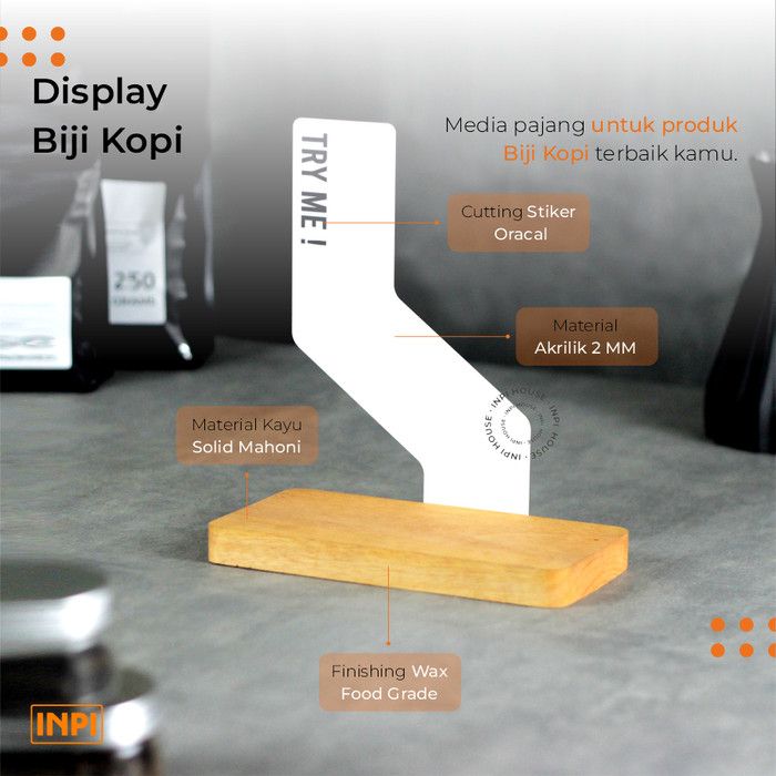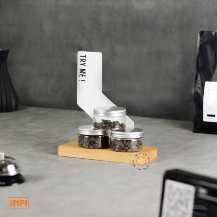 Rak Display Biji Kopi Kayu Akrilk - INPI House