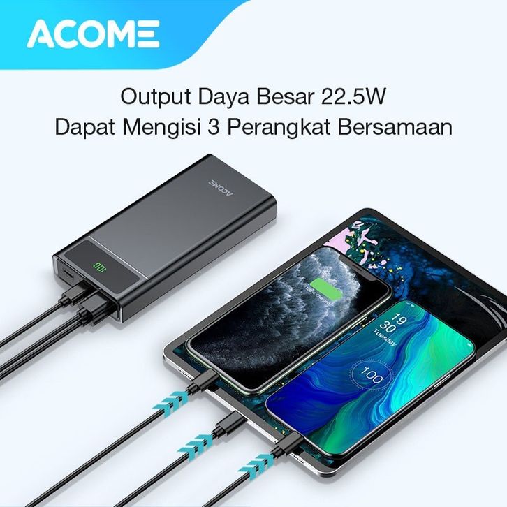 ACOME AP201 Powerbank 20000 mAh All in 1 Fast Charging QC3.0 PD VOOC SCP Dash Garansi Resmi 18 Bln