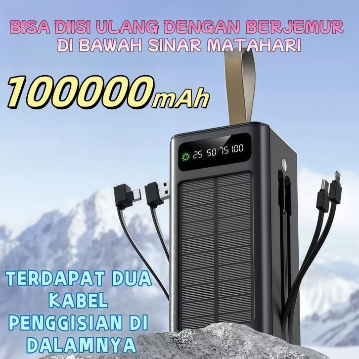 Solar Power Bank 100000Mah 22.5W PD20W 4 USB Ports Dan Tampilan Digital Powerbank Fast Charging