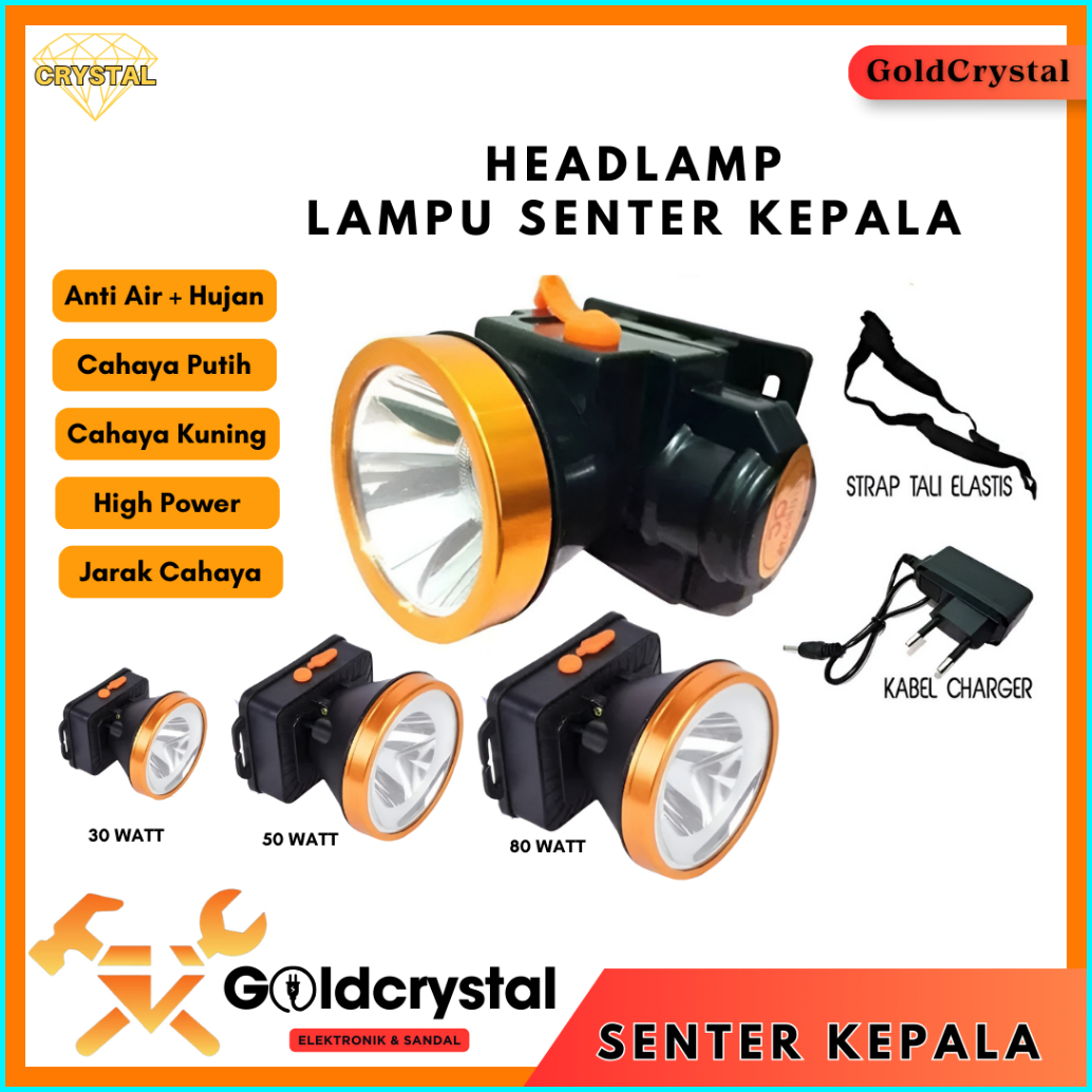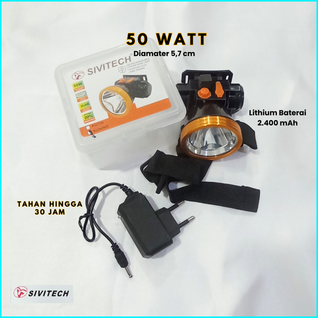 Lampu Senter Kepala Led 50 Watt Headlamp Battery Lithium Lampu Gunung Camping Hiking Senter Camping