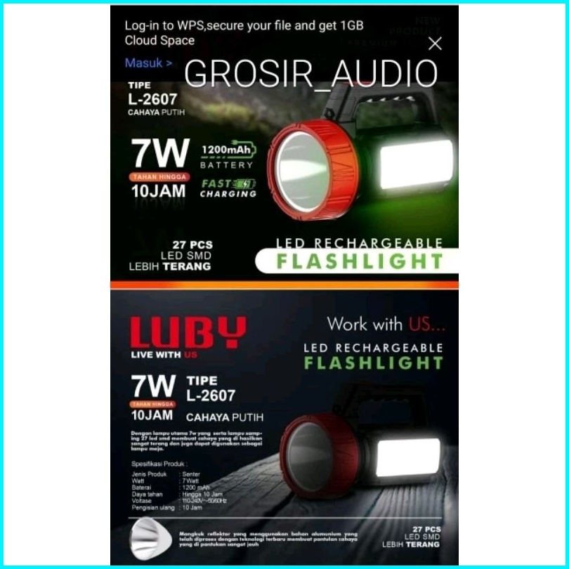 Senter Luby L2607 Senter Tangan Cas Luby L 2607 Original