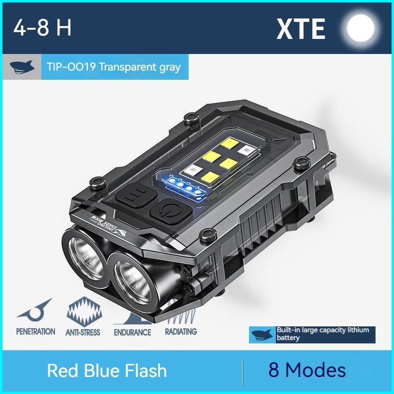 Senter Mini Smiling Shark Tip0019 Smilingshark Tip 0019 Cob Magnet Keychain Type-c Rechargeable 8modes Waterproof