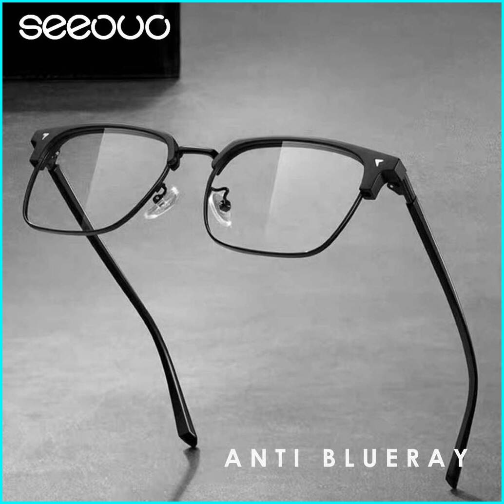 Seeouo Kacamata Antiradiasi Blueray Model Kotak Bahan Metal Tr Ringan Fashionable Style Pria Wanita Bisa Minus 8956 8951