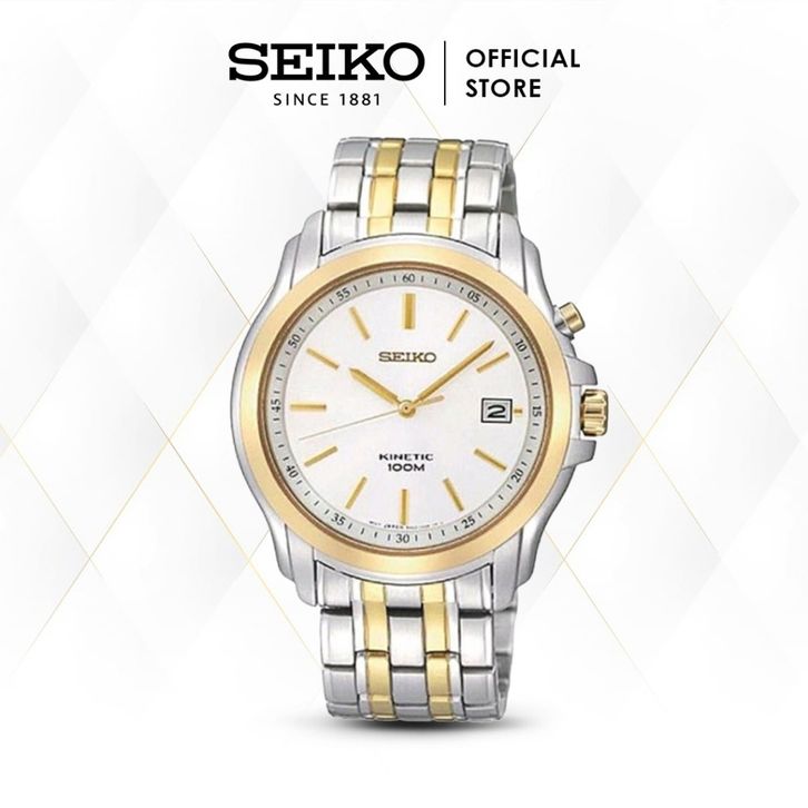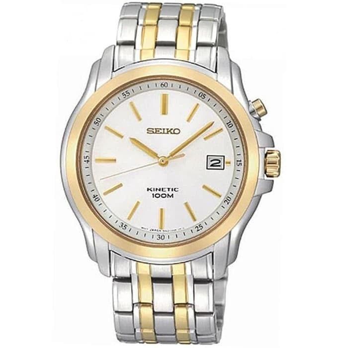 Jam Tangan Pria Seiko Kinetic Stainless Steel SKA490P1 SKA490 Gold Silver Original
