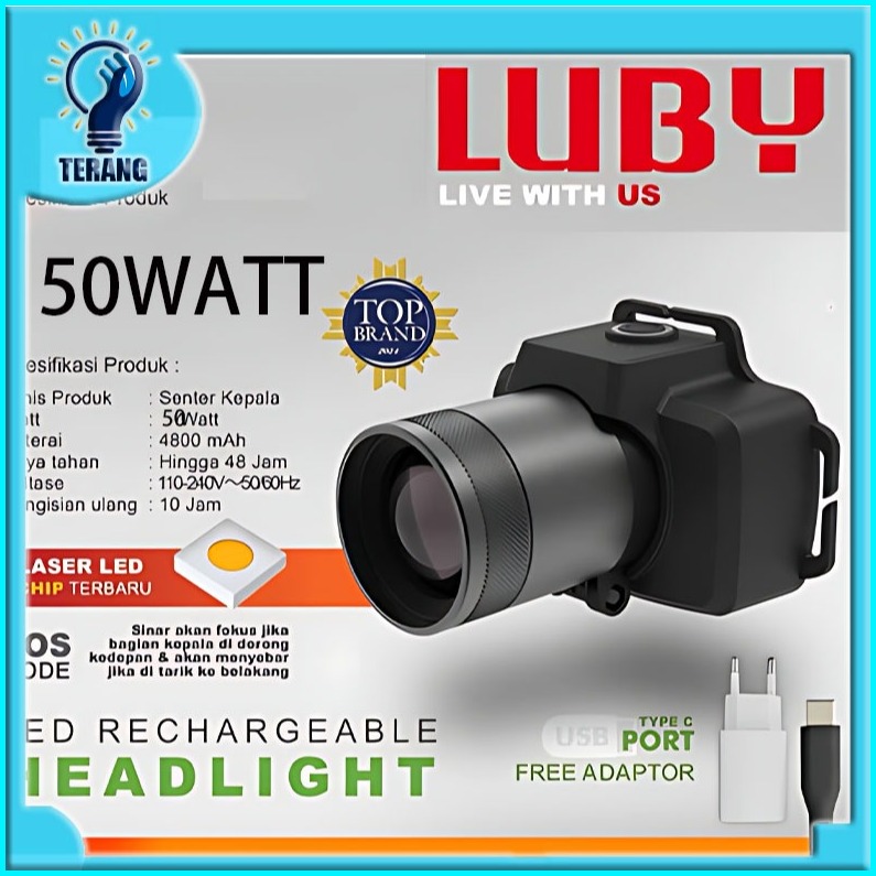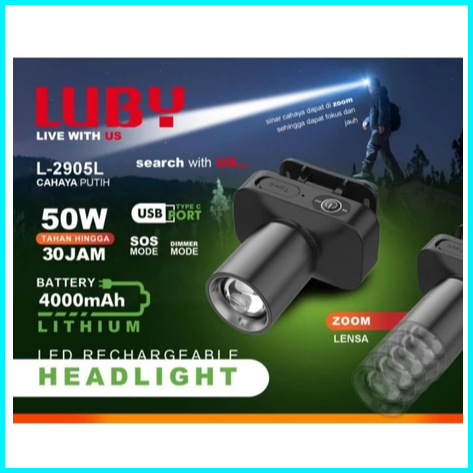 Senter Kepala Zoom Laser Luby Jarak Jauh Led 3 Mode Cahaya